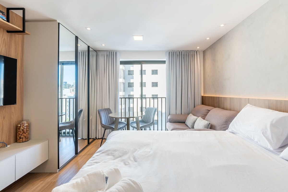 Ստուդիա ՝ բարձրակարգ դեկորով, որը նախատեսված է կարճատև կամ երկարատև այցի համար ։ Կատարյալ է զույգերի կամ հանգստի կամ բիզնես ուղևորների համար ։ Գտնվելով Պորտու Ալեգրիում ՝ այն մոտ է դեղատներին, հացաբուլկեղենի խանութներին և շուկաներին, ինչպես նաև առաջարկում է հեշտ մուտք դեպի քաղաքի հիմնական տեսարժան վայրերը ։ Գտնվելով Պորտու Ալեգրիի ամենաթանկարժեք շրջաններից մեկում ՝ տարածքն ունի բոլոր ենթակառուցվածքները ՝ հարմարավետ և հաճելի հանգիստ ապահովելու համար ։ Հաճելի կլինի ողջունել ձեզ ։