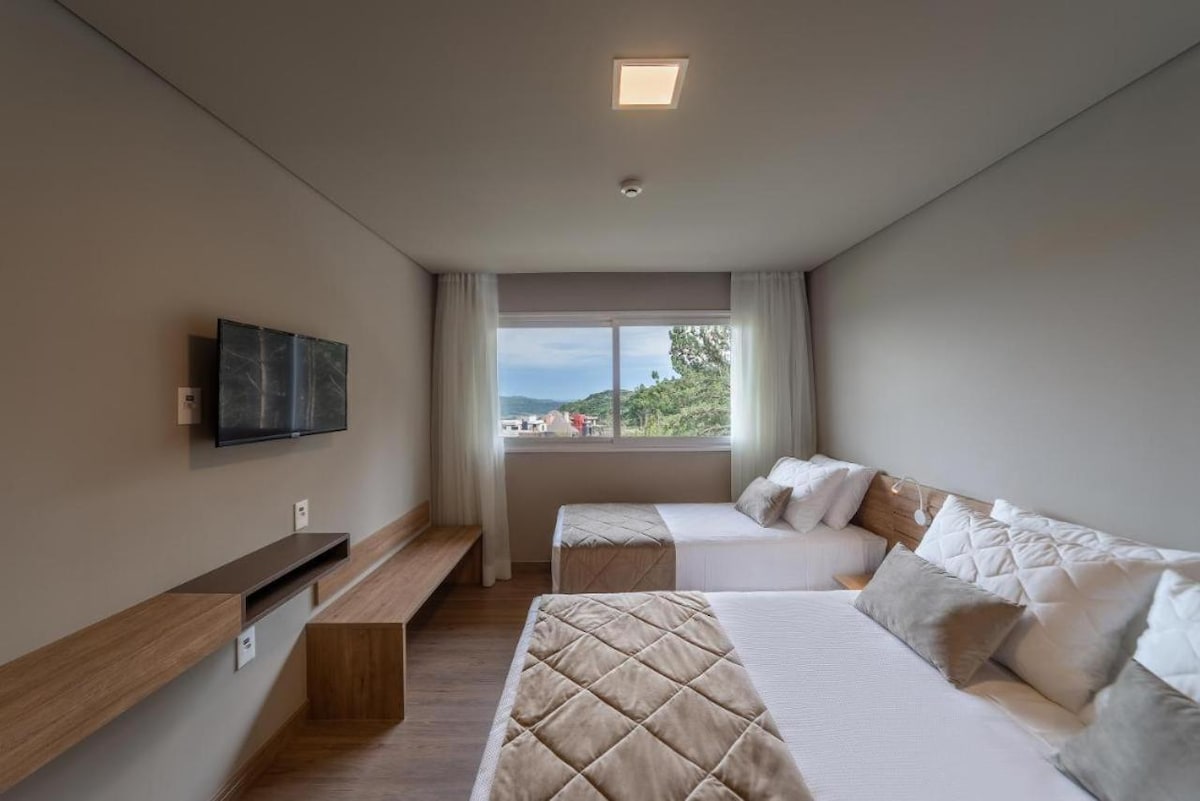 ✨ Ապրեք ապշեցուցիչ օրեր Գրեմադոյում ՝ հանգստավայրի հարմարավետությամբ: ✨ Դեսկանսո, ժամանց և նրբագեղություն ։ Ամբողջական բնակարան Golden Resort Gramado - ում ՝ լողավազաններից, ջակուզիից, մարզասրահից, խաղասենյակից և կինոթատրոնից օգտվելու հնարավորությամբ ։ Կատարյալ է զույգերի և ընտանիքների համար ։ Գրեմադոյի կենտրոնից և խոշոր զբոսաշրջային վայրերից, ինչպիսիք են Սնոուլենդը, ընդամենը մի քանի րոպե հեռավորության վրա: Հարմարավետություն և 5 աստղանի առողջարանային կառույց ։
