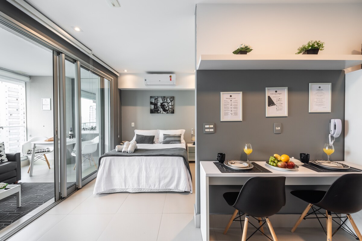 ՈՒՇԱԴՐՈՒԹՅՈՒՆ. կայանատեղիից օգտվելու համար պետք է նախապես տեղեկացնել այդ մասին ։ Լուսանկարներում երևում է գտնվելու վայրի մուտքը ։ Ժամանակակից լոֆթը գեղեցիկ ձևավորված է Սան Պաուլոյի գեղեցիկ քաղաքային տեսարանով: Այն առաջարկում է երկտեղանի մահճակալ ՝ 10 սմ բարձով, 50դյույմանոց հեռուստացույցով և արևոտ միջավայրով ։ Խոհանոցը հագեցած է որակյալ պարագաներով և ներառում է ճաշասեղան և աշխատասեղան: Պահարանն ունի լավ պահեստային տարածք, իսկ բնակարանն ունի օդորակիչ ՝ ամբողջ տարվա ընթացքում հարմարավետության համար ։