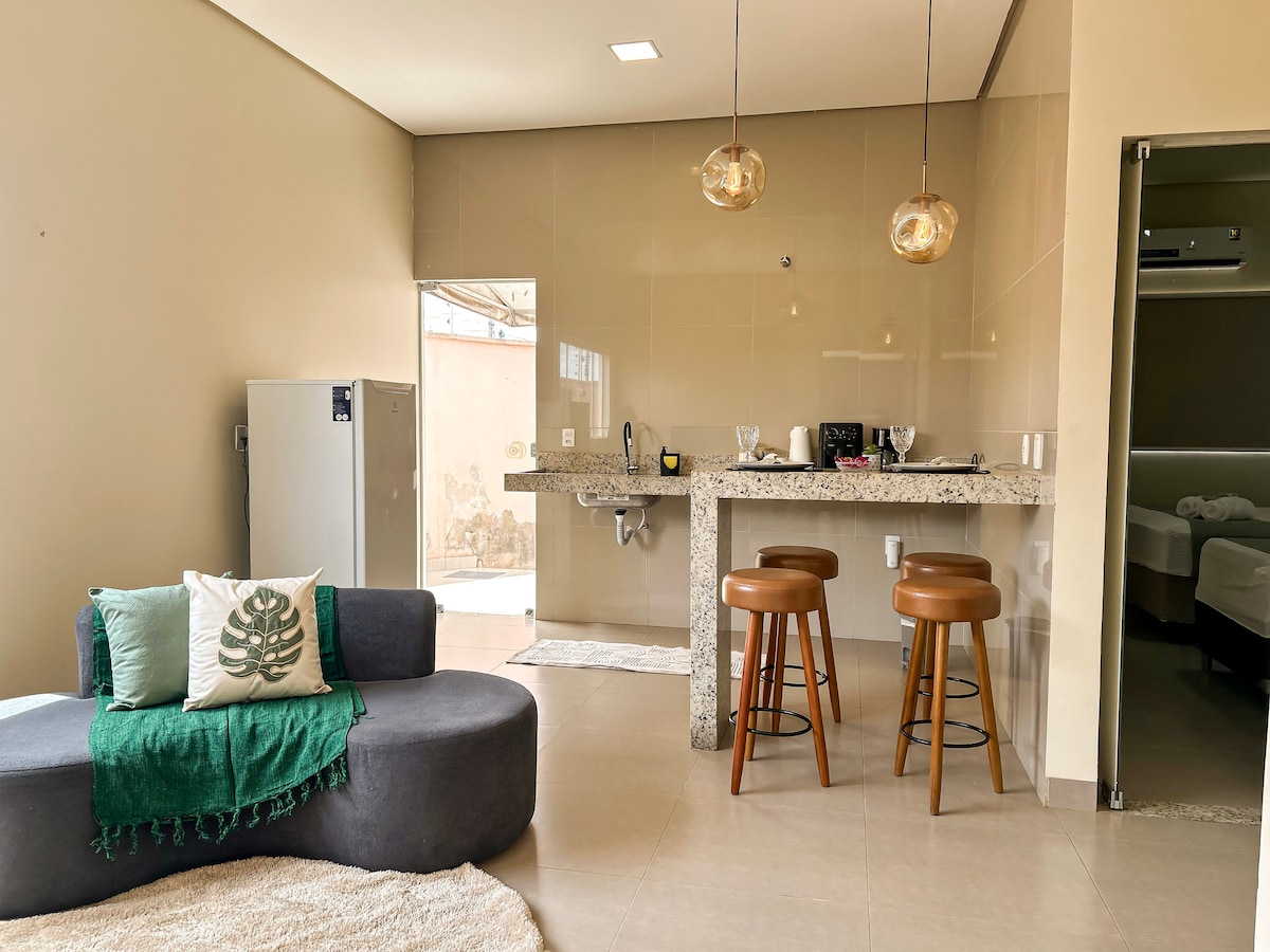 Descanse em um espaço clean, tranquilo e climatizado. Apartamento compacto e completo, ideal para quem busca conforto e praticidade. Localização privilegiada: a 1 km da Av. JK, 6 min do Capim Dourado e a poucos metros da Praia da Graciosa. Check-in remoto para sua comodidade.
