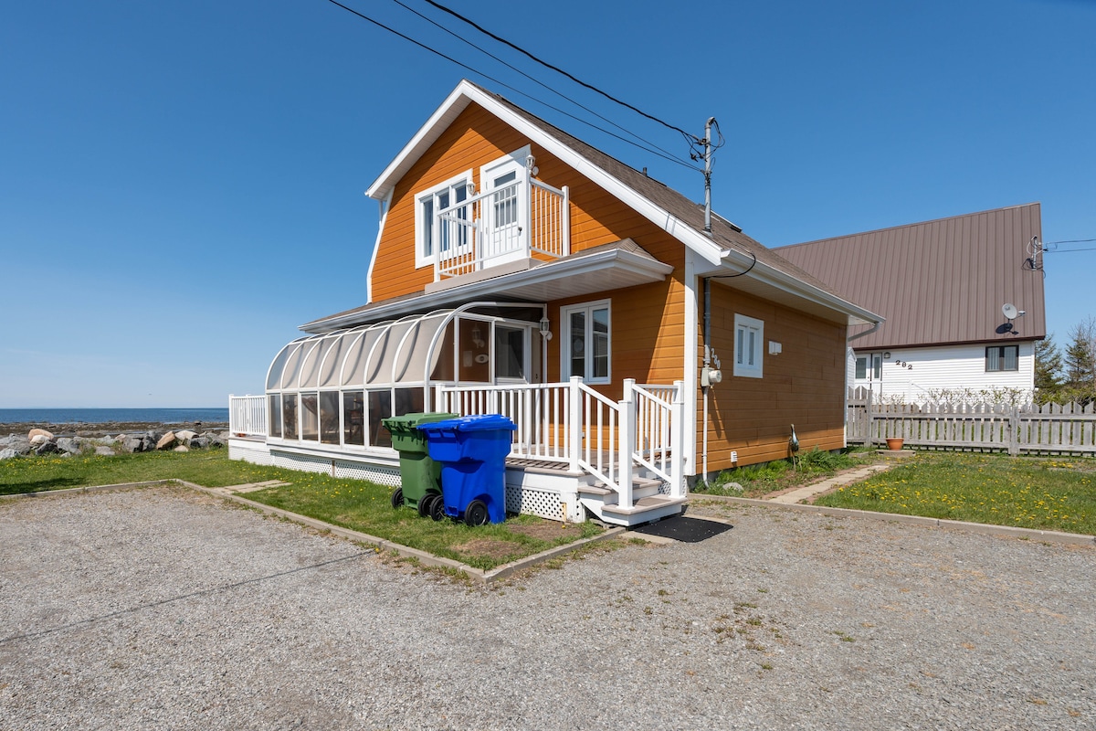 Shanti est une petite maison/chalet à 2 étages, à l'architecture paticulière, située sur le bord du majestueux fleuve Saint-Laurent. Sa finition intérieure est principalement composée de bois; ce qui la rend particulièrement chaleureuse, propice au repos et au ressourcement. Les amoureux de la nature seront choyés par la beauté des paysages et son point de vue tout à fait unique. La variété d'oiseaux est impressionnante et les phoques font partie des meubles. Au plaisir de vous recevoir. 🙏