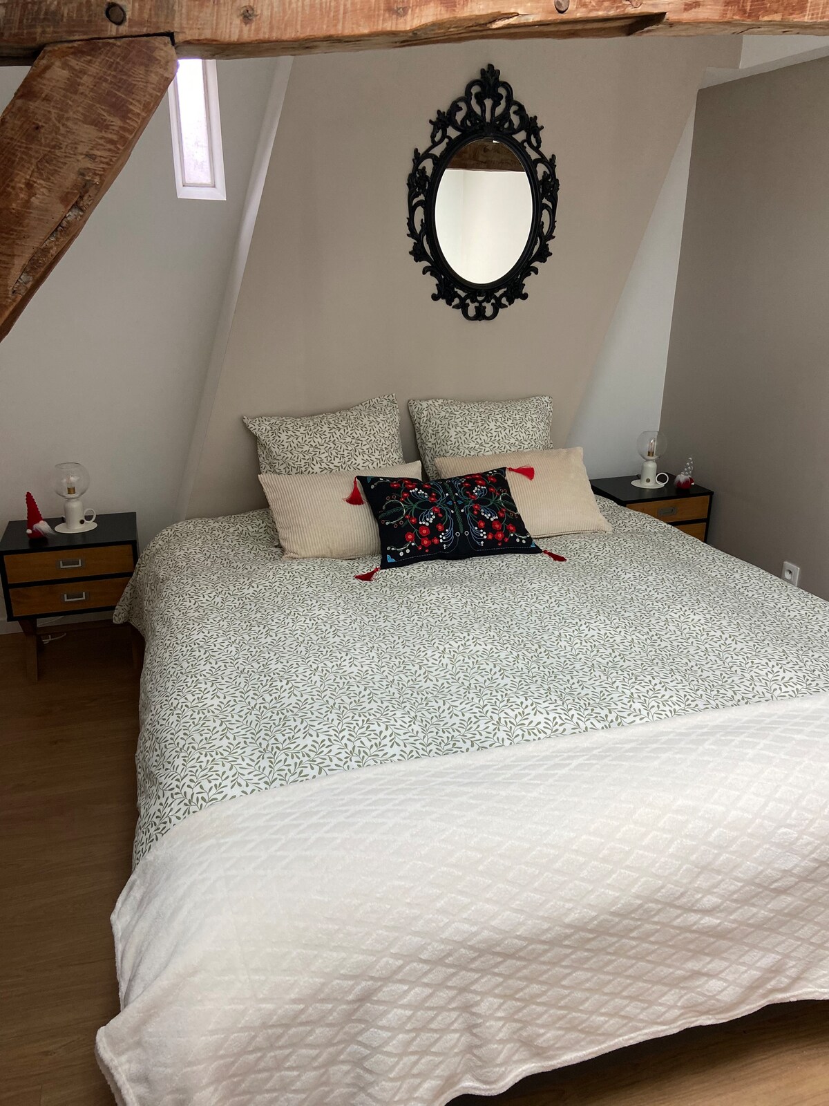 Մարի Ջոը ողջունում է ձեզ իր հյուրերի սենյակներում, որոնք գտնվում են Բերգուեսից հարավ - արևմուտք ։ Դուք կգնահատեք մեր գյուղական հանգստությունը, իսկ ծովից ընդամենը 20 կմ հեռավորության վրա կլինեք: 2 մեկտեղանոց հյուրասենյակներ, որոնք անկախ են սեփականատերերի տնից + 1 քոթեջ (ընդհանուր տարողունակությունը ՝ 10 մարդ): Rinette Apple Room ՝ 1 x 160 x 200 մահճակալ 1 քաշեք բազմոց - մահճակալ (2 մահճակալ) Մանկական մահճակալ ՝ ըստ պահանջի Wc, լվացարան, մասնավոր ցնցուղ Wi - Fi և հեռուստացույց Նախաճաշ սեփականատիրոջ տանը Խոհանոցիկն ազատ է