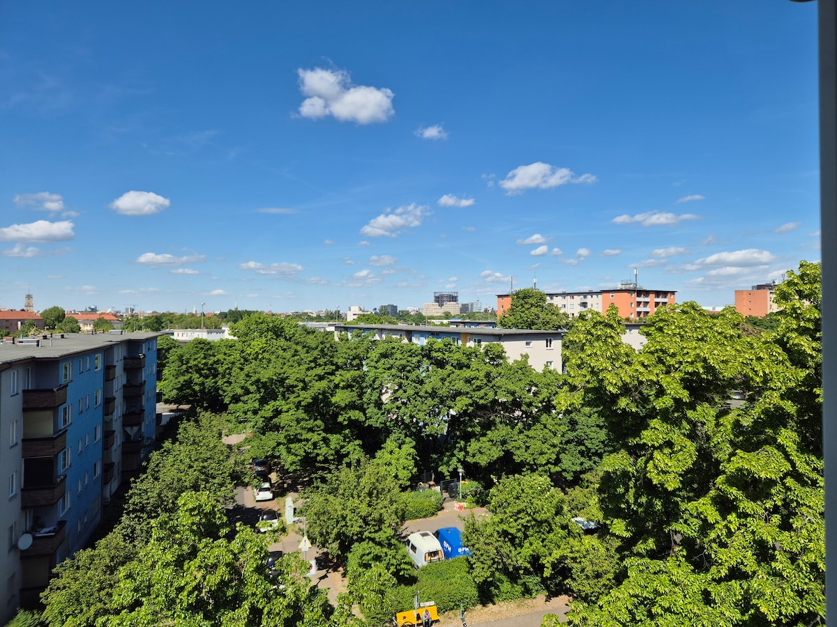 2022 թվականի հունիսից մեր պարտեզի տեսարանով ստուդիայի ոճի բնակարան միայնակների կամ զույգերի համար, այդ թվում ՝ Wi - Fi, լվացքի մեքենա, չորանոց, ամանալվաց մեքենա + սմարթ հեռուստացույց, որը գտնվում է Նեյկյոլնի/Կրոյցբերգի սահմանին գտնվող մեր բնակելի տան առաջին հարկում ։ Մենք գտնվում ենք տրանսպորտային հանգույցից, առևտրի թաղամասից, բարերից + ռեստորաններից ընդամենը 1 րոպե հեռավորության վրա և ոտքով հեռավորության վրա ենք մինչև Բեռլինի Տեմպելհոֆեր Ֆելդ + զբոսայգիներ + ջրանցքներ: