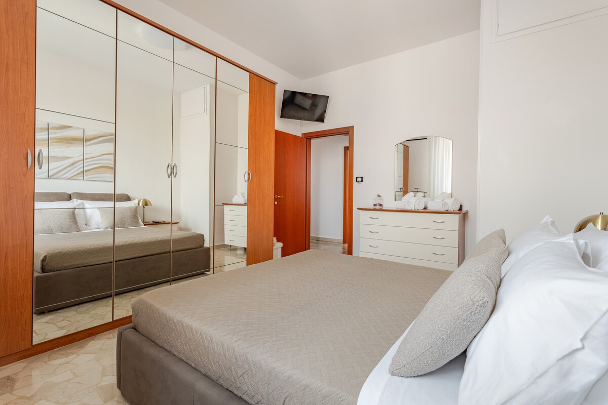 Delizioso appartamento open space appena rinnovato 55 mq al primo piano con ascensore completo di ogni comfort Ingresso, cucina attrezzata ,soggiorno con divano letto,smart tv 40 pollici,zona notte con letto matrimoniale, piccola zona di lavoro con scrivania ,armadio 4 ante,ampio bagno finestrato con box doccia walk-in,doppio lavabo,phon,lavatrice,ferro da stiro:biancheria da letto e da bagno,wifi,aria condizionata.Terrazzo affacciato su parco alberato con tavolo da pranzo e zona relax.