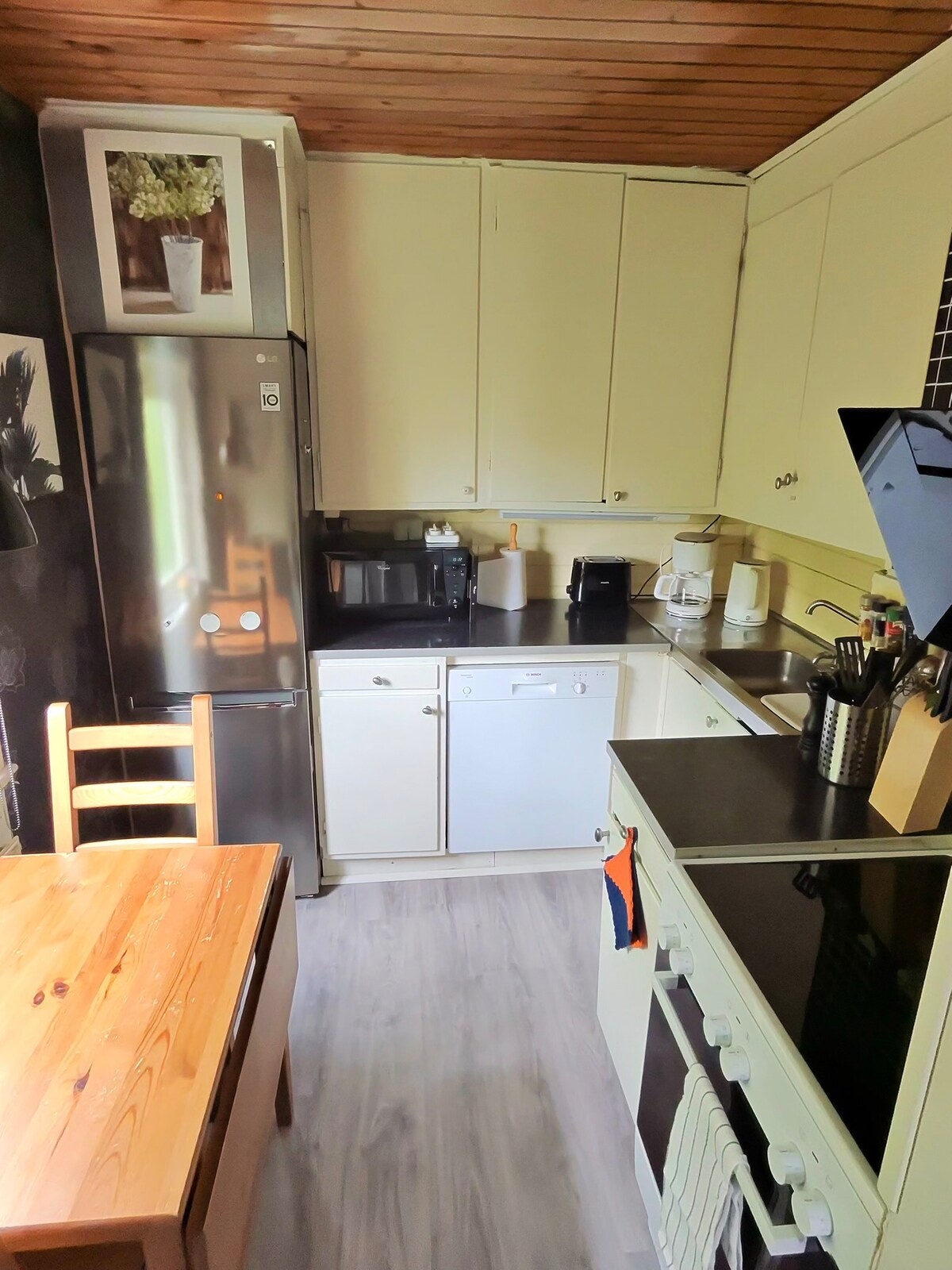 Separate , guesthouse 25 m2 in villa area. Kitchen, living room, sleeping loft for 2, and access to a sofa bed. Bathroom with shower and toilet. The accommodation is equipped with everything a home needs. Bus about 200 meters from the residence that takes you in different directions. A total of about 50 min by bus and subway to Stockholm city.