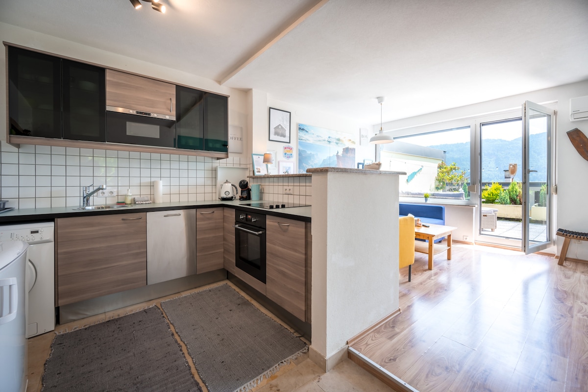 Մեր ժամանակակից բնակարանն ունի կտուր, որտեղից բացվում է տպավորիչ տեսարան դեպի Վյորթերսե լիճը և Կարավանկեն լեռները, որոնք մոտ են Վելդեն երկաթուղային կայարանին և A2 Süd Autobahn - ին: Շենքը գտնվում է անտառի հարևանությամբ, որտեղ կարող եք հրաշալի արշավներ կազմակերպել ։ Մոտակա շրջակայքում կան երեք լճեր, որտեղ կարող եք կատարել բոլոր տեսակի ջրասուզակները: Velden am Wörhtersee - ն շատ բան ունի առաջարկելու ՝ խանութներ, ռեստորաններ, տեռասներ և խաղատուն: Իտալիան և Սլովենիան հասանելի են մեքենայով 30 րոպեում: Դուք երբեք չեք ձանձրանա: