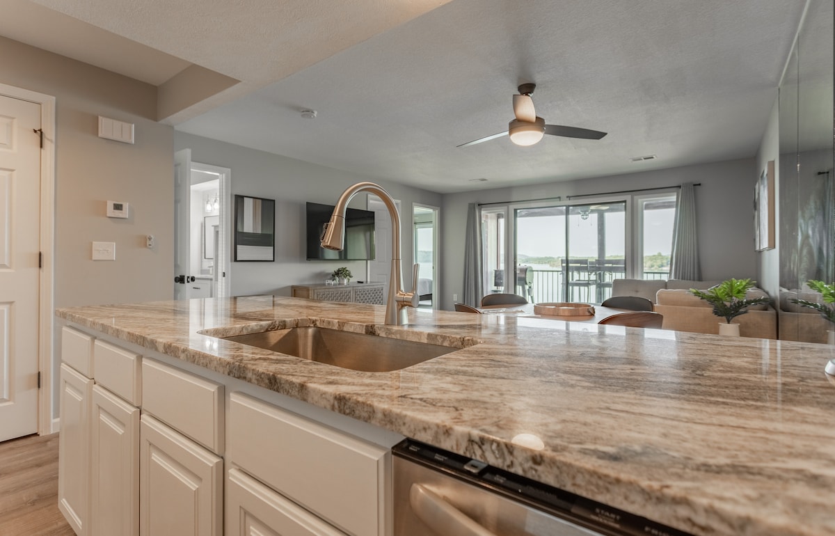 Փախեք դեպի Լեյքվյու ։ Այս 2BR 2BA կոնդոմինիումը լիովին վերանորոգում է դիզայներական ավարտներով ամենուր: Սիրով հրավիրում ենք ձեզ անձնատուր լինել Քիմբերլինգ Քրոսինգ ափամերձ հանգստավայրում գտնվող այս բացառիկ կոնդոմինիումին ։ Ձեր ամրագրումը ներառում է բացօթյա լողավազան, պիկլբոլի կորտեր, բասկետբոլ, փակ լողավազան, մանկական խաղահրապարակ և տեղում ճաշ: Մթերք ճանապարհի երկայնքով ։ 1 մղոն դեպի Քիմբերլինգ Մարինայի նավահանգիստ ։ 10 մղոն մինչև Silver Dollar City ։ 17 մղոն մինչև Showboat Branson Belle և 18 մղոն մինչև Branson Landing ։
