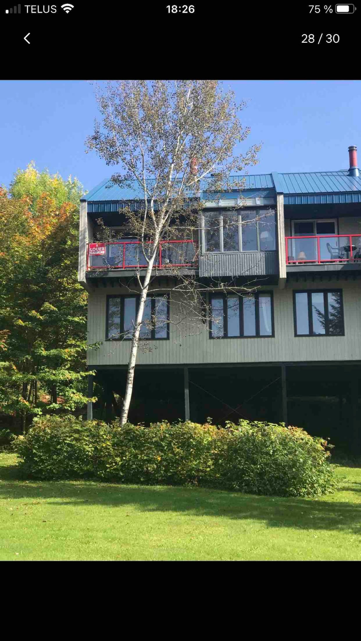 Profitez de votre séjour dans un magnifique condo avec vue sur les pentes de ski. Le condo est situé à 5 minutes à pied de la montagne de ski. Le condo inclus; 1 chambre avec lit queen, 1 chambre avec lit double, 1 divan lit, 1 salle de bain incluant une douche, laveuse et sécheuse, un poêle à bois avec bois ansi qu’une air climatisé , 2 espaces de stationnements et le Wifi rapide. Activités à proximités : Ski alpin, Golf, Vélo de montagne (Empire 47) et le Parc National de la Jacques Cartier.