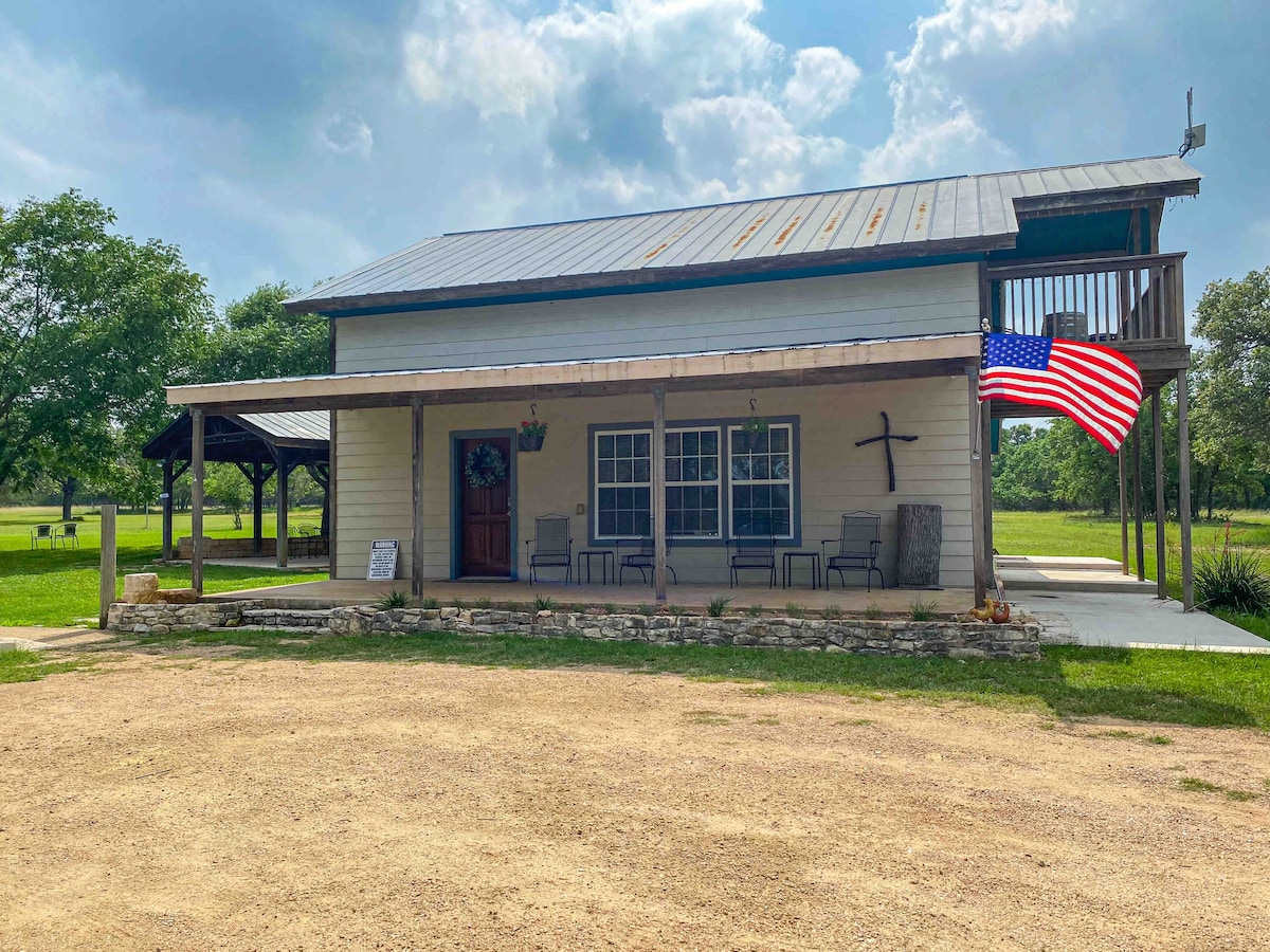 The Hye & Bye offers a truly unique lodging experience. Skip the containers, tiny houses & cabin complexes and enjoy the secluded privacy of a ranch experience .. within single digit minutes of 290’s top wine & bourbon destinations. You’ll love saying HYE …. but dread BYE. Two story three bedroom home with loft and wrap around porch. Perfect for watching sunrises/sunsets, stars, wildlife, and livestock. Working ranch with areas to hike & bike. And PICKLE BALL COURT!