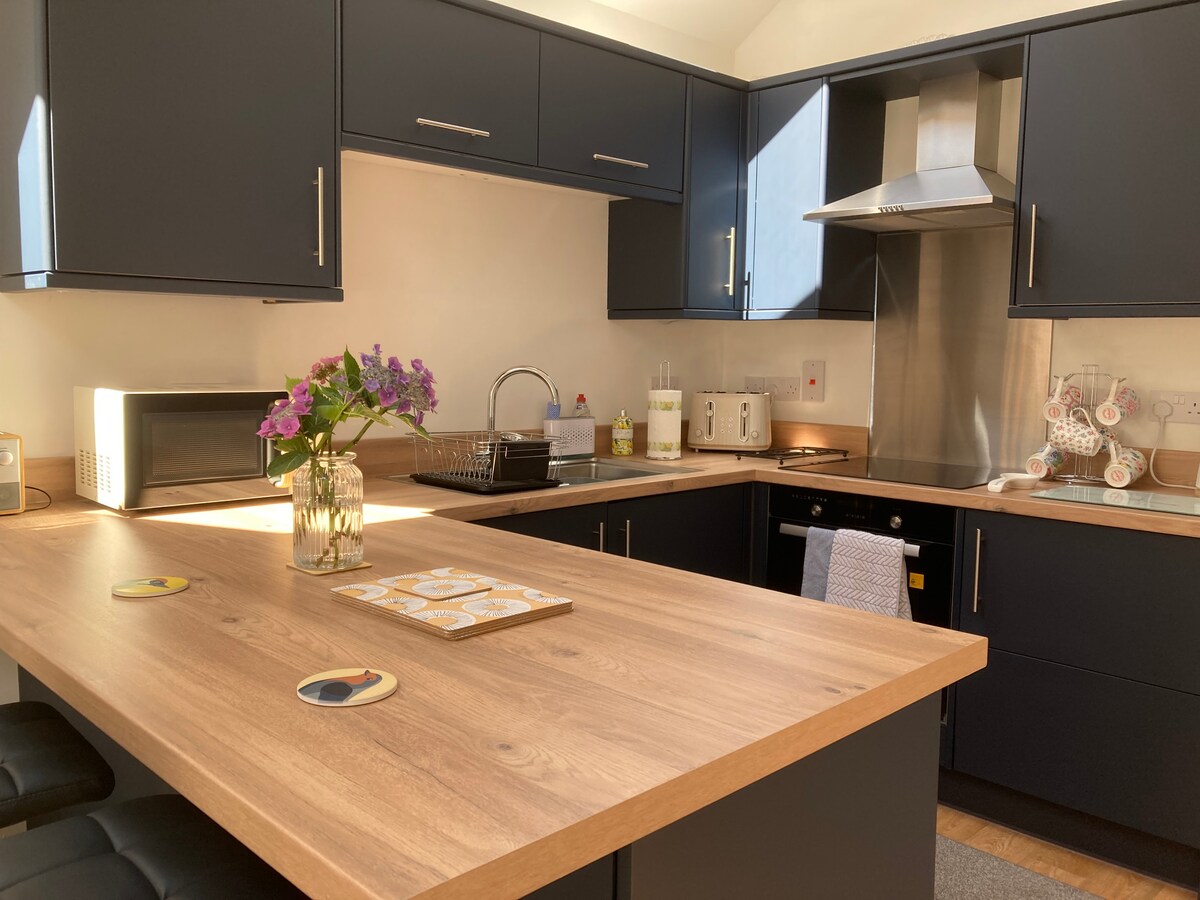 CHECK IN AFTER 3pm and BEFORE 8pm unless prior arrangements are made with the host. NO PETS OR PARTIES. NO ADDITIONAL VISITORS WITHOUT PRIOR ARRANGEMENT with hosts. CHECK OUT BY 11am. This new beautiful, cosy, barn conversion. The barn has a well equipped kitchen/dining area with lounge and large 65inch smart TV. A master bedroom with super king bed and en-suite the second bedroom has an option of super king bed or 2 singles and a beautiful full bathroom with roll top bath and shower.