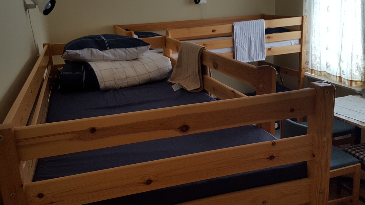 The Stuga is our guest house in the garden, available when it's not to cold. It's a simple little cottage without running water. There is space for 2 guests. One bed on the floor and one bed under the roof. The bathroom is in the main house.