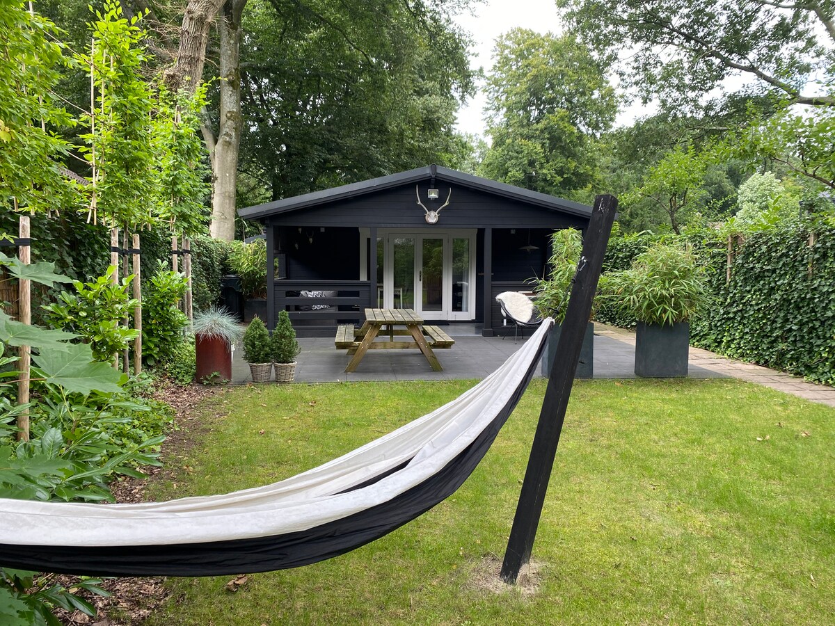 Sfeervolle blokhut, bosrijke buurt, veel privacy