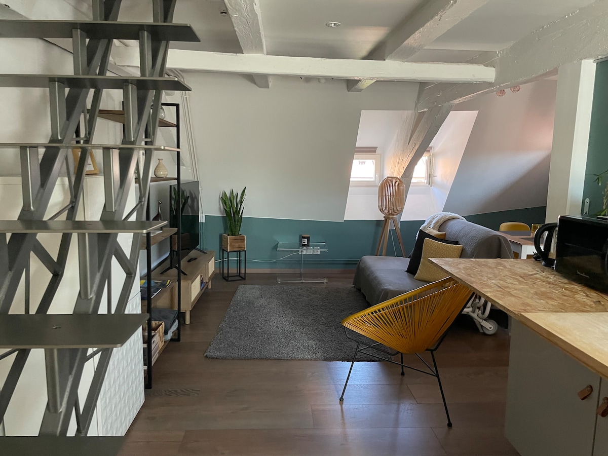 Ստուդիան իդեալական է գտնվում կենտրոնական կղզում ՝ տաճարին և Petite France - ին մոտ, նոր վերանորոգված է ՝ պահպանելով անցյալի հմայքը, փայլող ճառագայթների քարե պատը, դիզայներական լոգասենյակը և կահավորված խոհանոցը: Կացարանը շատ հանգիստ է, մոտակայքում կան խանութներ, ռեստորաններ, բարեր, թանգարաններ... Հաճելի վայր, որը թույլ կտա առանց չափավորության բացահայտել գեղեցիկ Ստրասբուրգ քաղաքի բոլոր կողմերը: