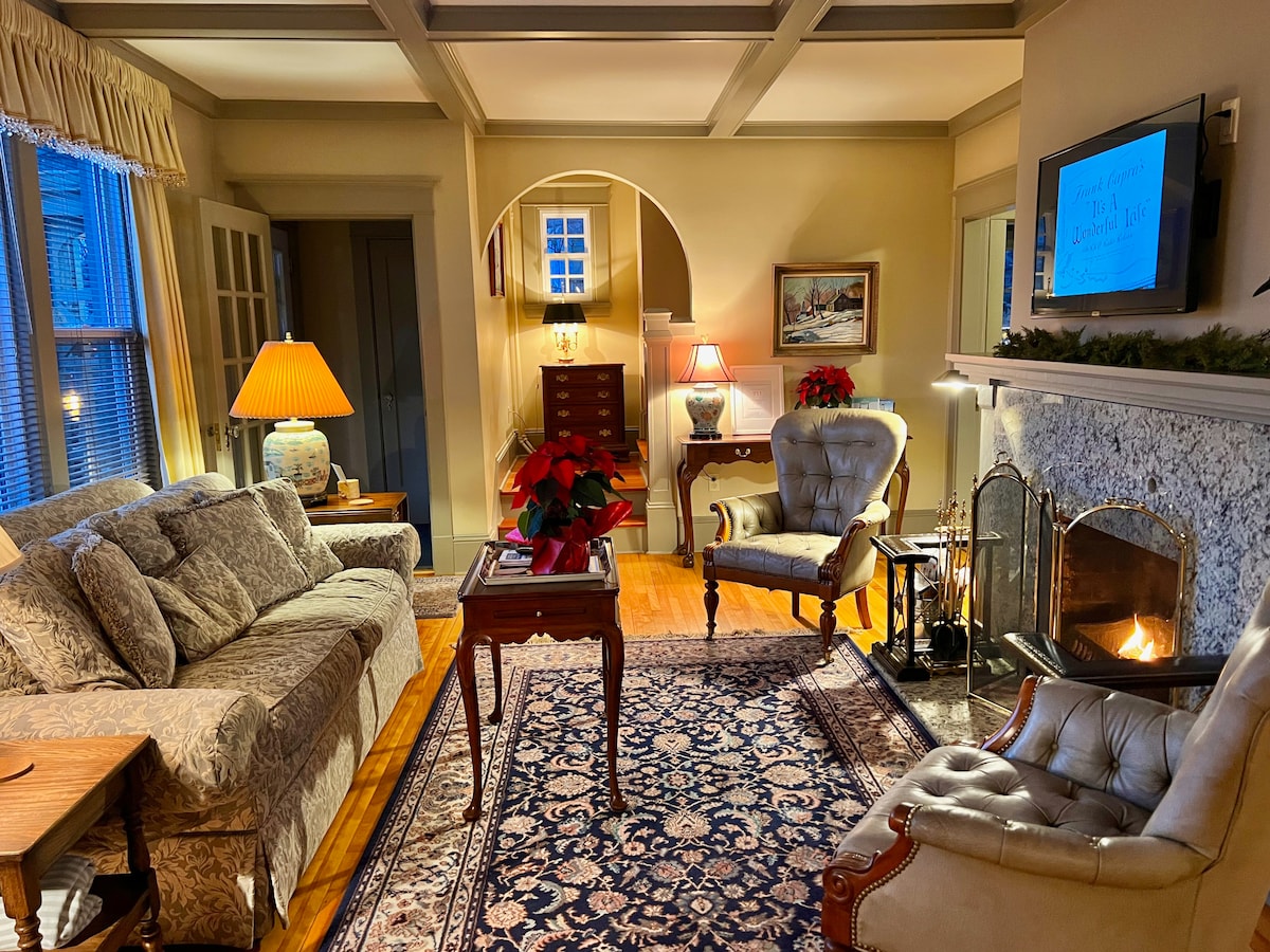 Judy’s Entire Cozy Fireplace Suite with firepit!