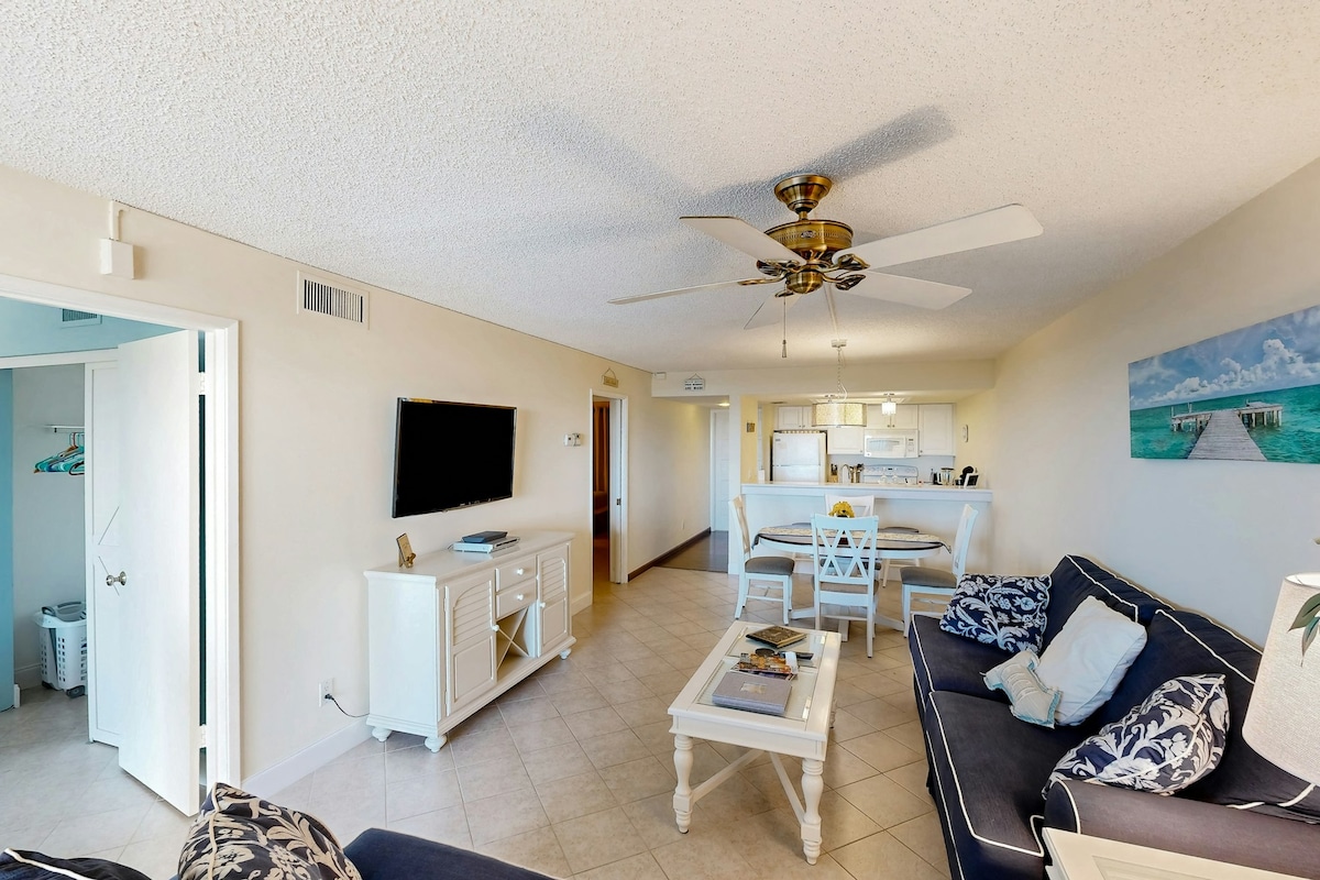 Հանգստացեք ամբողջ ընտանիքով այս խաղաղ վայրում ։ Այս գեղեցիկ նոր վերանորոգված լողափի կոնդոմինիումը կատարյալ է ընտանեկան հանգստի համար: Համայնքն ու շրջակա միջավայրը չափազանց համերաշխ են և լիովին կահավորված են Հարավային Ֆլորիդայում ծովափնյա հանգստի համար ։ Այն ունի առանձին լողափ, տարբեր լողավազաններ և թենիսի կորտեր, գոլֆի դաշտ, մարզասրահ, ռեստորան և շատ այլ հարմարություններ: Բնակարանն ամբողջությամբ ապահովված է խոհանոցային պարագաներով, սրբիչներով, լոգարանի կոմունալ հարմարություններով, ննջասենյակի կոմունալ հարմարություններով և բազմոցով ։
