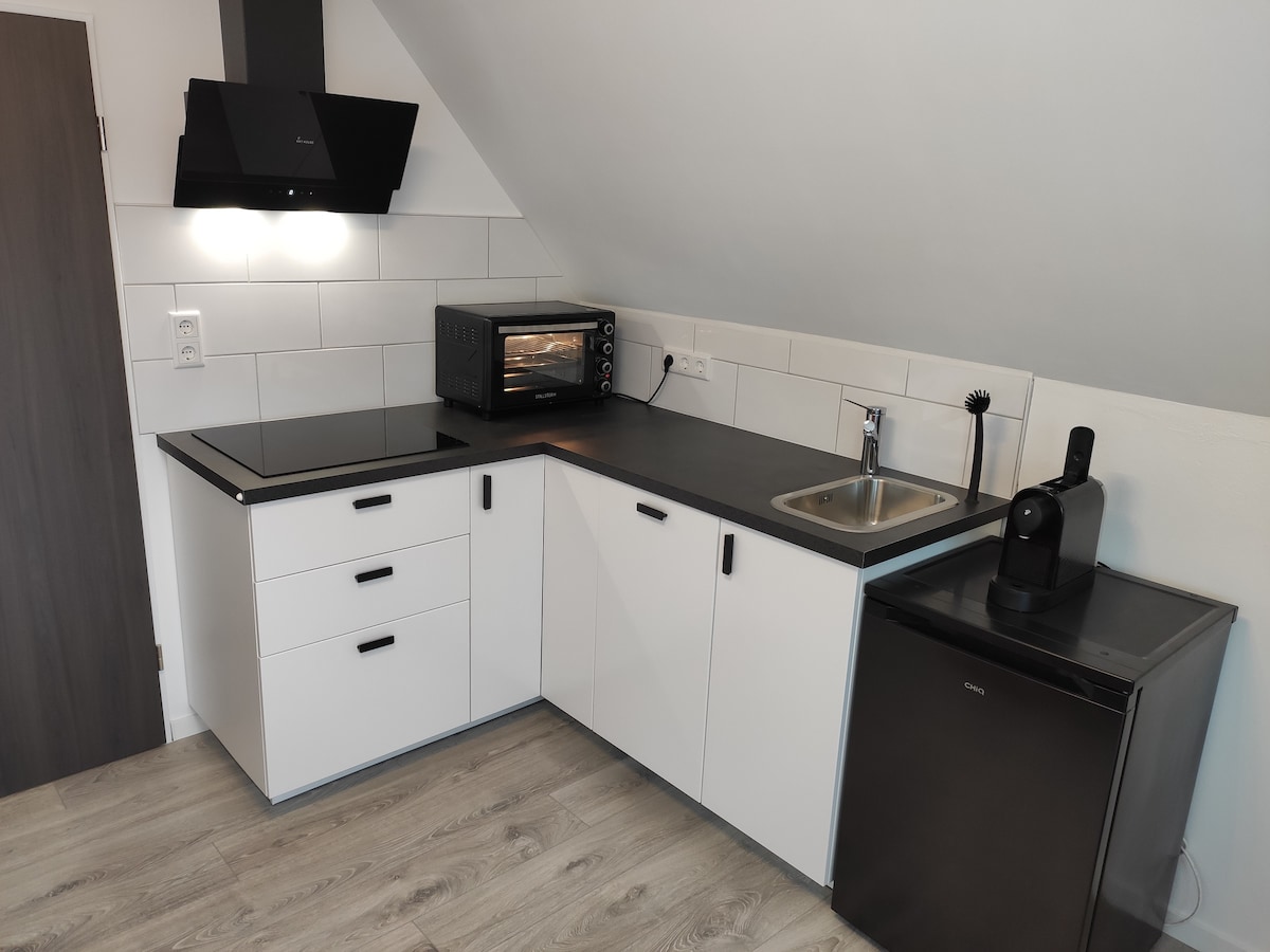 Das Appartment liegt im OG eines Einfamilienhauses. Die Küche ist mit Induktionsherd, Backofen, Spülmaschine sowie Kühl/Gefrierschrank ausgestattet. Hier ist auch die Essecke, ein Sofa und Fernseher. Im Schlafzimmer sind zwei Betten (je 2x1 m). Der Balkon ist von der Küche und vom Schlafzimmer aus zugänglich. Das Großes Meer ist 4 km entfernt. Wiegboldsbur liegt zentral zwischen Norden, Aurich und Emden und ist idealer Ausgangspunkt für Radtouren. Die Küste ist in ca 25 km erreichbar.