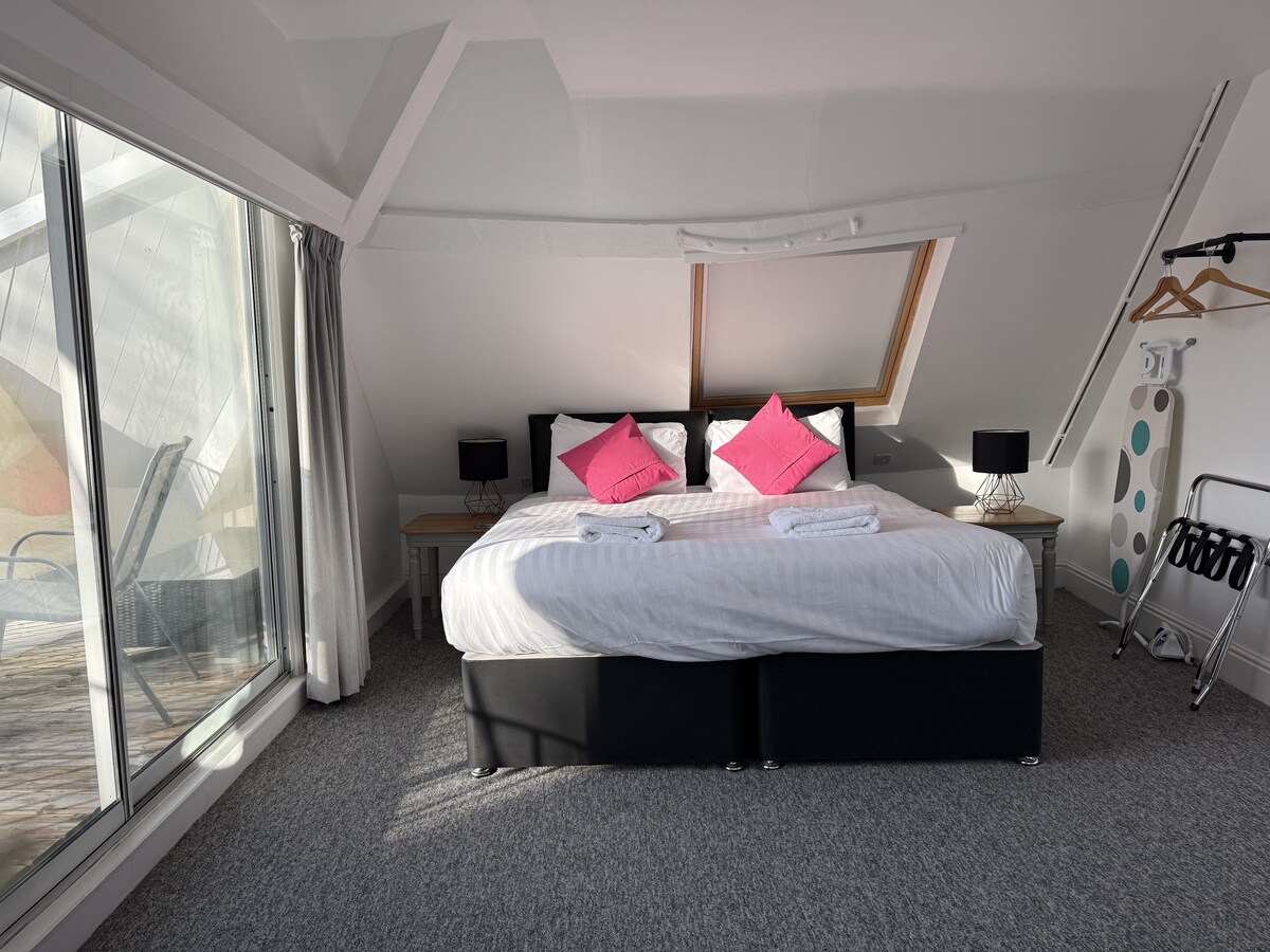 Part of the recently refurbished First Light Hotel, this brand new self contained ground floor studio apartment is perfect for a family break, or good friends to share. Two super comfy king size beds, a seating and dining area, a small kitchen and a bathroom suitable for those with accessible needs. Also access to main hotel communal kitchen and laundry as well as two private gardens. Dedicated parking just outside the door.
