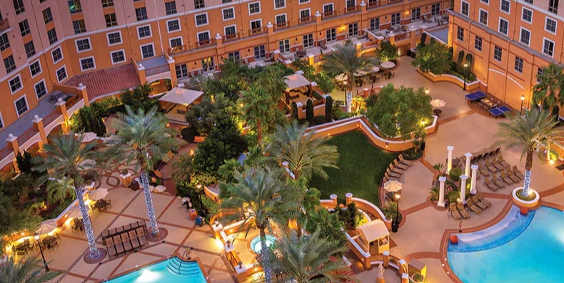 Միջերկրածովյան ոճի հանգստի հանգիստ Լաս Վեգասի հատվածից ընդամենը մեկ մղոն հեռավորության վրա, երեք աշտարակներն առաջարկում են բացառիկ տեսարաններ դեպի Լաս Վեգասի շլացուցիչ երկնաքերը, անապատային լեռները և հանգստավայրի փարթամ բակը ։ Լաունջ հանգստավայրի լողավազանի մոտ, սուրճ վերցրեք տեղում Starbucks - ից կամ մի պատառ վերցրեք ուտելու համար: Հանգստավայրից դուրս կարող եք բացօթյա զվարճանալ այնպիսի գեղատեսիլ վայրերում, ինչպիսիք են Grand Canyon - ը, Lake Mead - ը և Red Rock Canyon - ը ։ Բացի այդ, վայելեք հայտնի շատրվանների շոուն Բելաջիոյում ։