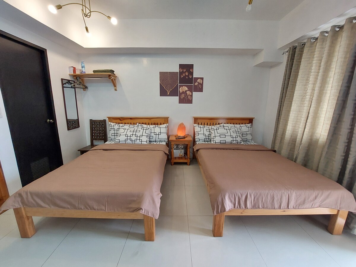 Հանգստացեք ամբողջ ընտանիքով այս հարմարավետ և խաղաղ վայրում ։ Մեր տարածքն ունի հետևյալ առանձնահատկությունները ՝ - 150 -179 սմ մահճակալ ՝ ըստ պահանջի և լրացուցիչ ներքնակով ։ - Բազմոց - մահճակալ - 55դյույմանոց HD հեռուստացույց Netflix - ով և YouTube - ով - PLDT կայուն Wi - Fi ՝ մինչև 70 ՄԲ/վ արագությամբ ։ Լավ է տան տեղադրումից ստացված աշխատանքի համար - Լրացրեք խոհանոցային պարագաները, էլեկտրական սալօջախը, բրնձի կաթսան, սառնարանը, միկրոալիքային վառարանը և այլն: - Ժամանակակից և մաքուր CR ՝ բիդեով և տաք ցնցուղով - Կայանատեղը մեկ գիշերվա համար P300 է ՝ ըստ կոնդոմինիումի փոխարժեքի ։ - Հարմար է տնային կենդանիների համար ։