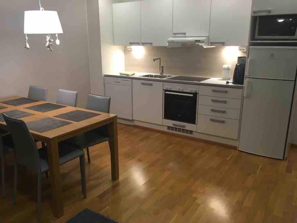 Renovated semi-detached house (2br, 67sqm) in a quiet location, 5 km from Ruka. 500 m to the cross-country skiing track, 100 m to the snowmobile trail, and 4 km to the grocery store. The apartment is great for families or a group of friends. The floor plan is such that the smaller bedroom and the separate toilet are separated from the rest of the apartment by a door, so privacy is available. A nice atmosphere is created by an open fireplace, sauna, a terrace, and a forest landscape as a bonus.