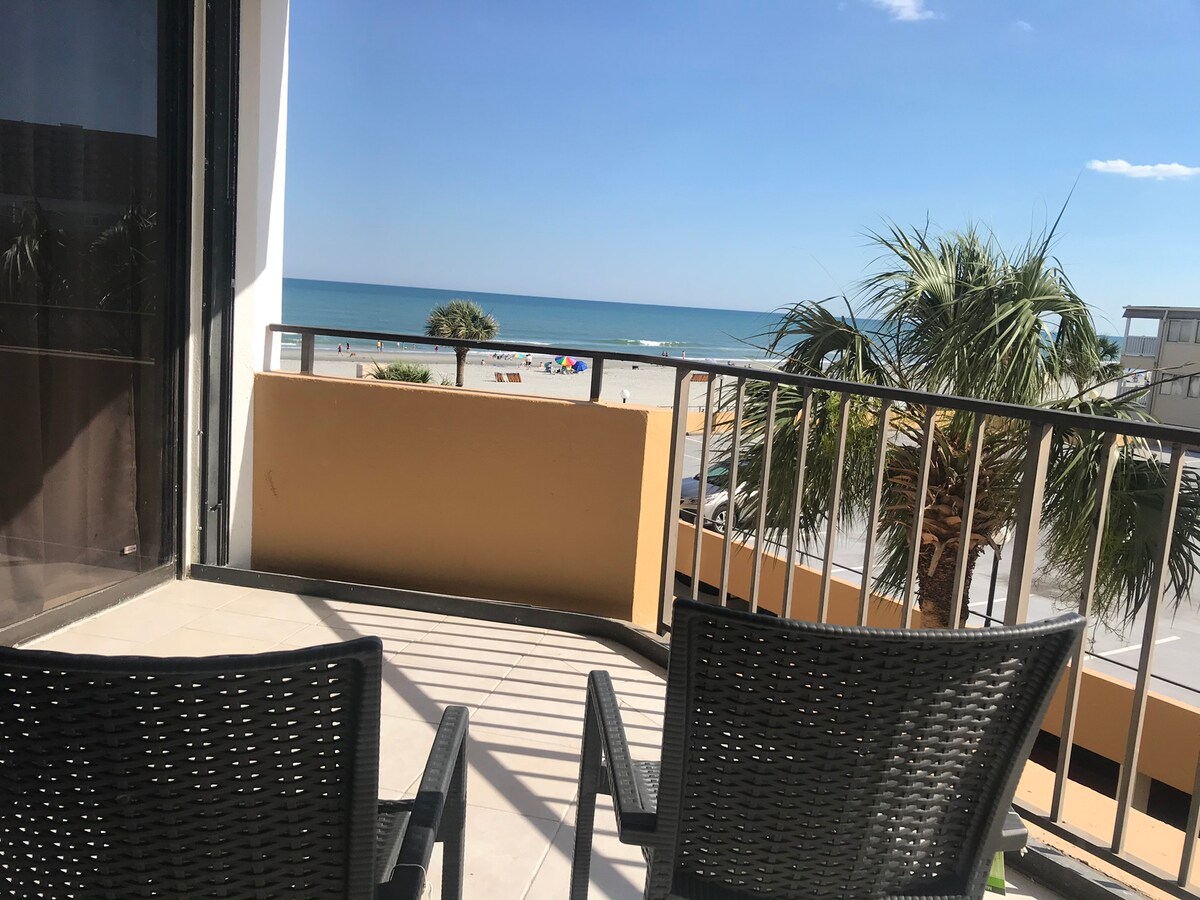 Գեղեցիկ թագավոր 1BR/1 լոգասենյակ ՝ ՈՒՂԻՂ ՕՎԿԻԱՆՈՍԻ ափին գտնվող կոնդոմինիում ։ Հանգստացեք ձեր առանձին պատշգամբում և դիտեք արևածագը ՝ միաժամանակ խմելով ձեր առավոտյան սուրճը: 😊 Պիկ սեզոնին ամեն չորեքշաբթի երեկոյան պատշգամբից հրավառություն: Եթե ուզում եք հիասքանչ փորձառություն ունենալ Միրթլ Բիչում ձեր այցի ընթացքում, կարդացեք իմ կարծիքները և վստահ եղեք, որ ճիշտ ընտրություն եք կատարել ։ Սա ուղիղ օվկիանոսի ափին բացվող տեսարան է, ոչ թե մասնակի տեսարան ։ Վարձակալության նվազագույն տարիքը ՝ 25 ։ 3 - րդ հարկի օվկիանոսի ափին գտնվող այս կոնդոմինիումն ունի տան բոլոր հարմարությունները: