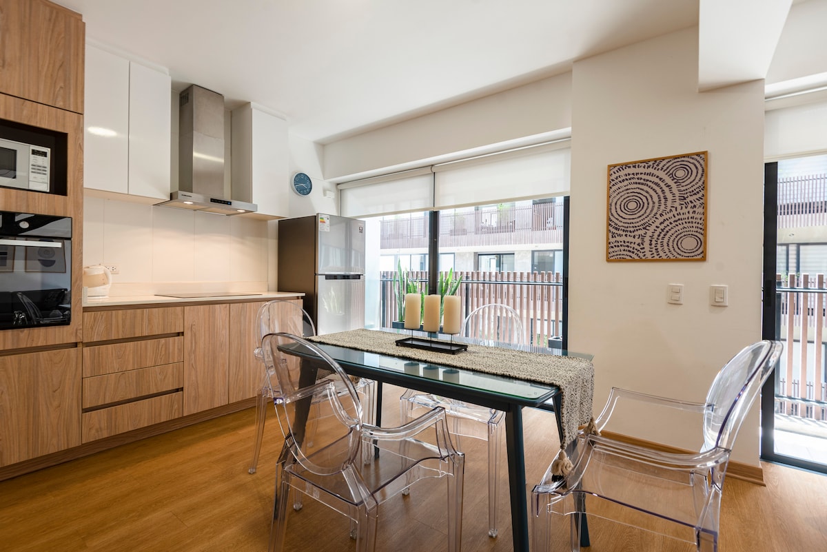 100% beautifully designed by Balance Diseño, located in THE BEST area of Miraflores, Kennedy Park area where you have EVERYTHING by walking distance, Larcomar, best restaurants, super markets, traditional market, handcraft markets, 24hrs groceries and 24hrs food stops! This location also has swimming pool, functional gym, 1 free parking inside the building and excellent connections to the public transport system.