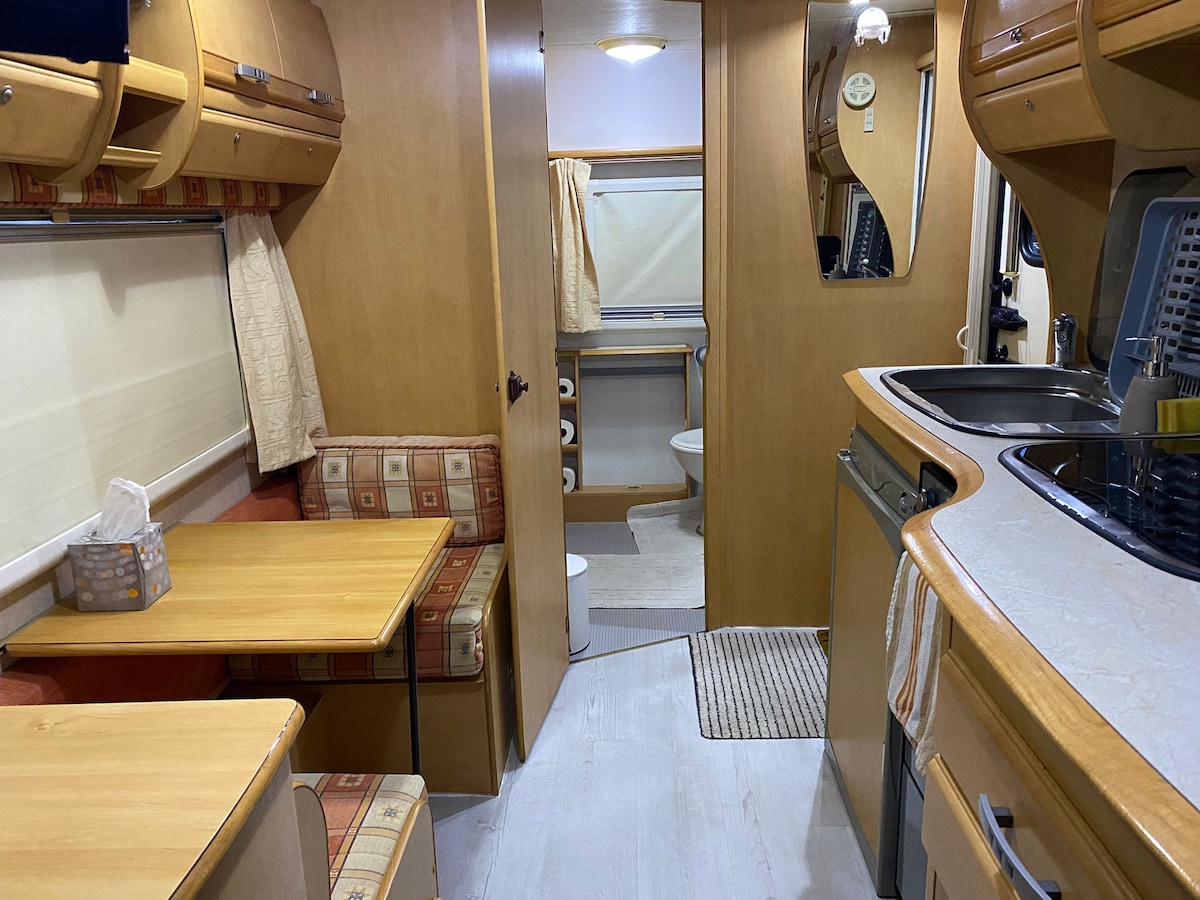 2005 swift sutnor. Recently refurbishment interior. Has all you need for off grid solar panels means you don't need to use campsites every night or at all., gas fridge and electric fan heater. Good hot shower from gas blow heater system. Central Kitchen area with excellent storage equipped with a 3 Burner Hob,1 elec for when hooked up. stoves gas Oven & Grill, Domestic Fridge with freezer box and Sink .Gas and electric hobs for TV freeview DVD player Insurance to be arranged at additional ask.