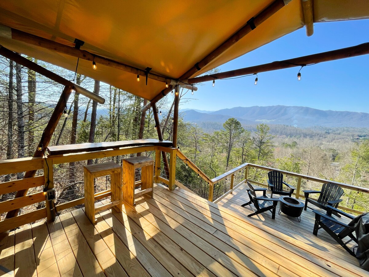 Այս գլեմփինգային վրանն ունի ամեն ինչ ։ Վայելեք նոր ավելացված ջակուզի, ջեռուցում և օդորակիչ, խոհանոցիկ, հեռուստացույց, մեծ շքեղ տախտակամած ՝ կրակարանով և գրիլով, և նույնիսկ ջեռուցվող լոգասենյակի հատակը!! Thunderhead Ridge Getaways - ն առաջարկում է շքեղ գլեմփինգային տներ, որտեղից բացվում են Թանդերհեդ լեռան և Թենեսիի Մեծ Սմոքի լեռների հիասքանչ տեսարանները ։ ****** Այս տարածքում ՏՆԱՅԻՆ ԿԵՆԴԱՆԻՆԵՐ չեն թույլատրվում ******* Հետևեք մեզ սոցիալական ցանցերում ՝ @thunderheadridgegetaways