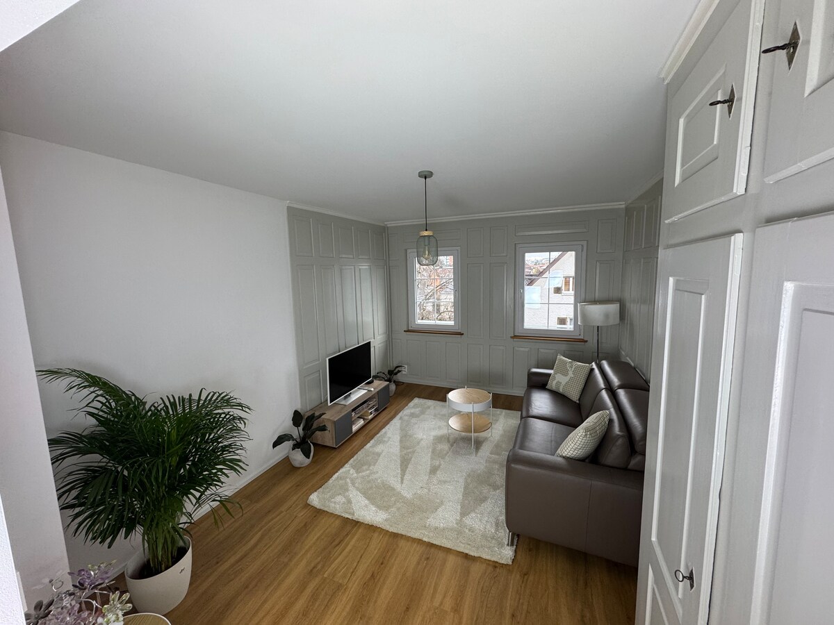 Հանգստացեք ընտանեկան տանը ։ Նորաձև, առանձին բնակարան ՝ իր առանձին մուտքով: Բնակելի տարածք ՝ խոհանոցով, քնելու տեղ ՝ 180 սմ մահճակալով և լոգասենյակ ՝ ցնցուղով ։ Փոքր այգի և գյուղական վայրեր ։ Ավտոբուսի կանգառ կարելի է հասնել 2 րոպեում: Ցյուրիխը, Winterthur - ը և Kloten օդանավակայանը հասանելի են 25 րոպեում: