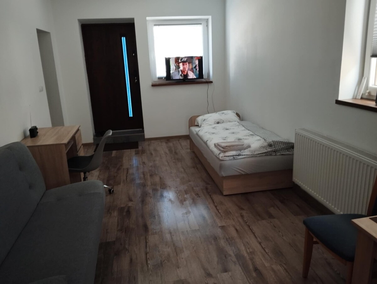 Do wynajęcia komfortowy apartament z osobnym wejściem, przeznaczony dla dwóch lub 3 osób. (wersalka i tapczanik). Cena dotyczy całego apartamentu, niezależnie od liczby gości. W apartamencie znajduje się: łazienka z prysznicem, w pełni wyposażona kuchnia z lodówką i kuchenką, salon z biurkiem, stołem i czterema krzesłami, wersalką, tapczanikiem oraz telewizorem. Do dyspozycji gości jest bezpłatne Wi-Fi.Bezpłatnego parkowania na ulicy. Z tyłu budynku znajduje się ogródek z grillem