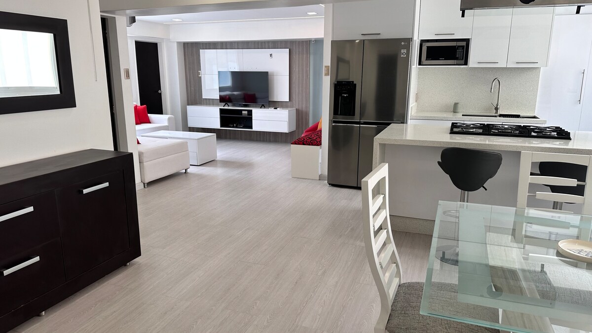 Իդեալական է ընտանիքի կամ ընկերների հետ ուղևորությունների համար նորաոճ, ընդարձակ, շքեղ, հանգիստ բնակարանում, որը գտնվում է արևելյան Կարակասում գտնվող անվտանգ վայրում և բացի բոլոր տրանսպորտային ծառայություններից: Գոյություն ունեն 3 առևտրի կենտրոններ, որտեղ կարող եք ոտքով գնալ: 3 ընդարձակ սենյակ ՝ օդորակիչով և 2 լոգասենյակով, հարմարավետ հյուրասենյակ, ճաշասենյակ և խոհանոց ՝ հագեցած ամերիկյան սառնարանով, ջեռոցով և միկրոալիքային վառարանով: Լվացքի սենյակ ՝ լվացքի մեքենայով կամ չորանոցով ։ Համայնապատկերային տեռաս, որտեղ կարող եք վայելել օր ու գիշեր ՝ տպավորիչ տեսարանով:
