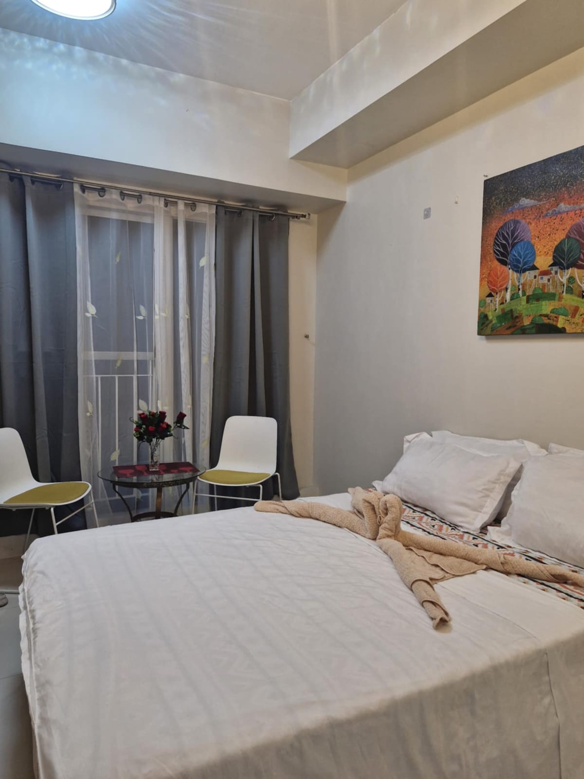 Enjoy a cozy stay in this modern, well-lit apartment with stylish decor. Relax in a comfortable bed, unwind in the plush seating area, and take in the serene view through large windows. This space features a contemporary design perfect for relaxation away from the city. Located in Wind Residences Tower 4, 3rd floor, it’s ideal for solo travelers, couples, or a group of 3-4 pax looking for a comfortable and quiet getaway.