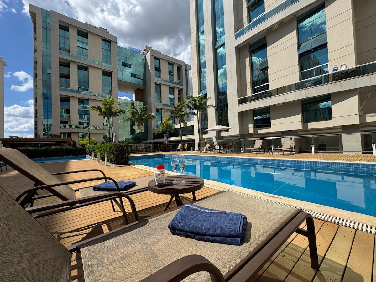 Próximo ao aeroporto, estação do metrô e o melhor shopping de Brasília. Fácil acesso aos centros comerciais e de lazer. Aconchegante e de bom gosto, estacionamento privativo, wi-fi, TV à cabo, Netflix, ar condicionado na sala e quarto, microondas, forno elétrico, fogão, geladeira, cozinha equipada. O condomínio tem a opção de 3 restaurantes com variado cardápio e café da manhã, almoço e lanches, além de uma conveniência auto service 24 horas. Piscina, Sauna e Academia. Todo enxoval novo.