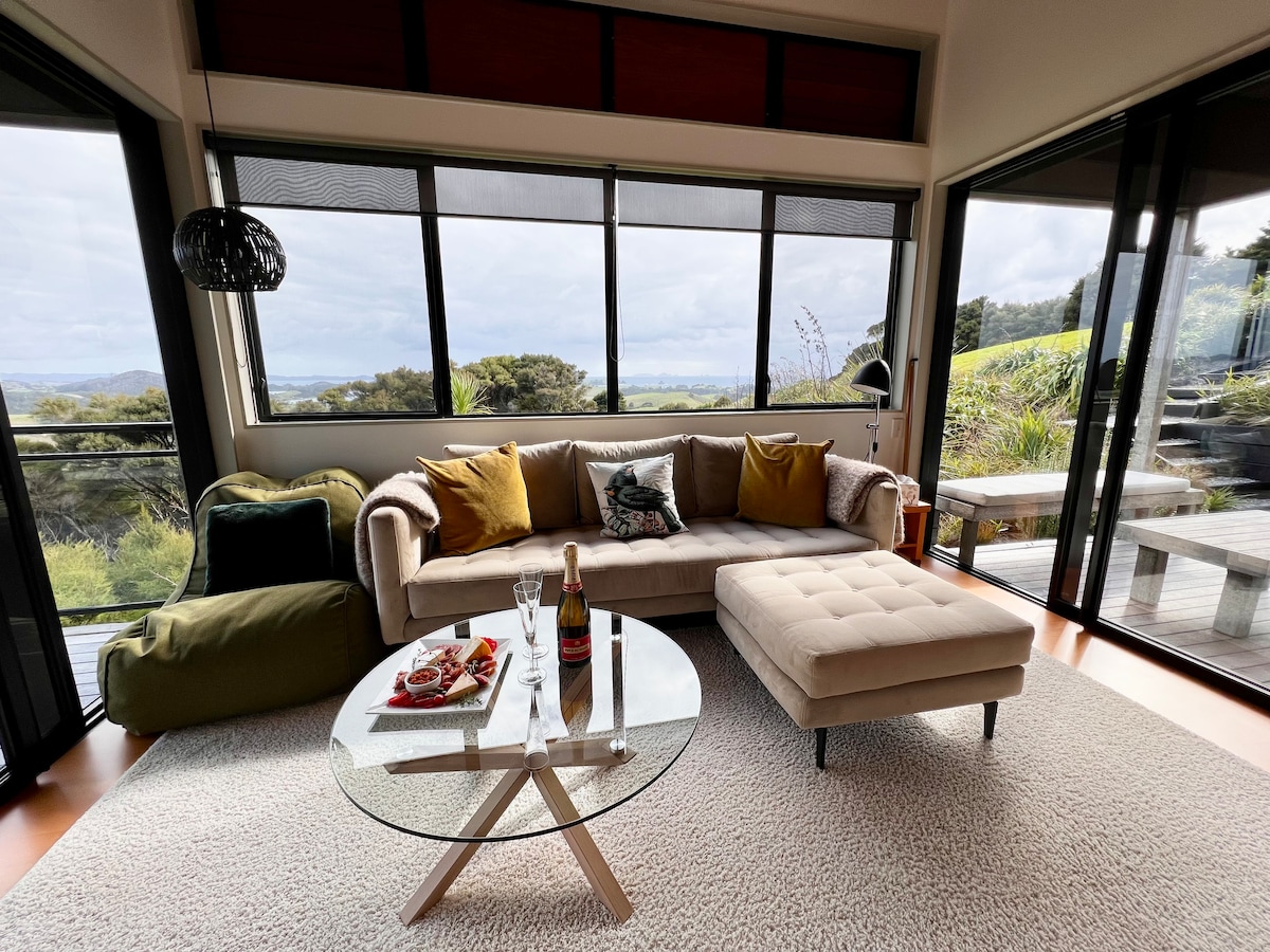 Luxurious Eco House in Rural Paradise Experience modern eco-living with a rustic touch in our off-grid, private retreat. Newly built and self-contained, this haven offers stunning valley and ocean views, making it perfect for relaxation and unwinding. Enjoy the tranquility and beauty of nature in this unique and comfortable getaway.