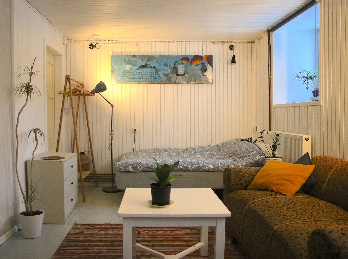 Արևոտ ստուդիայի բնակարան ՝ Տելիսկիվիի մոտ գտնվող պարտեզով