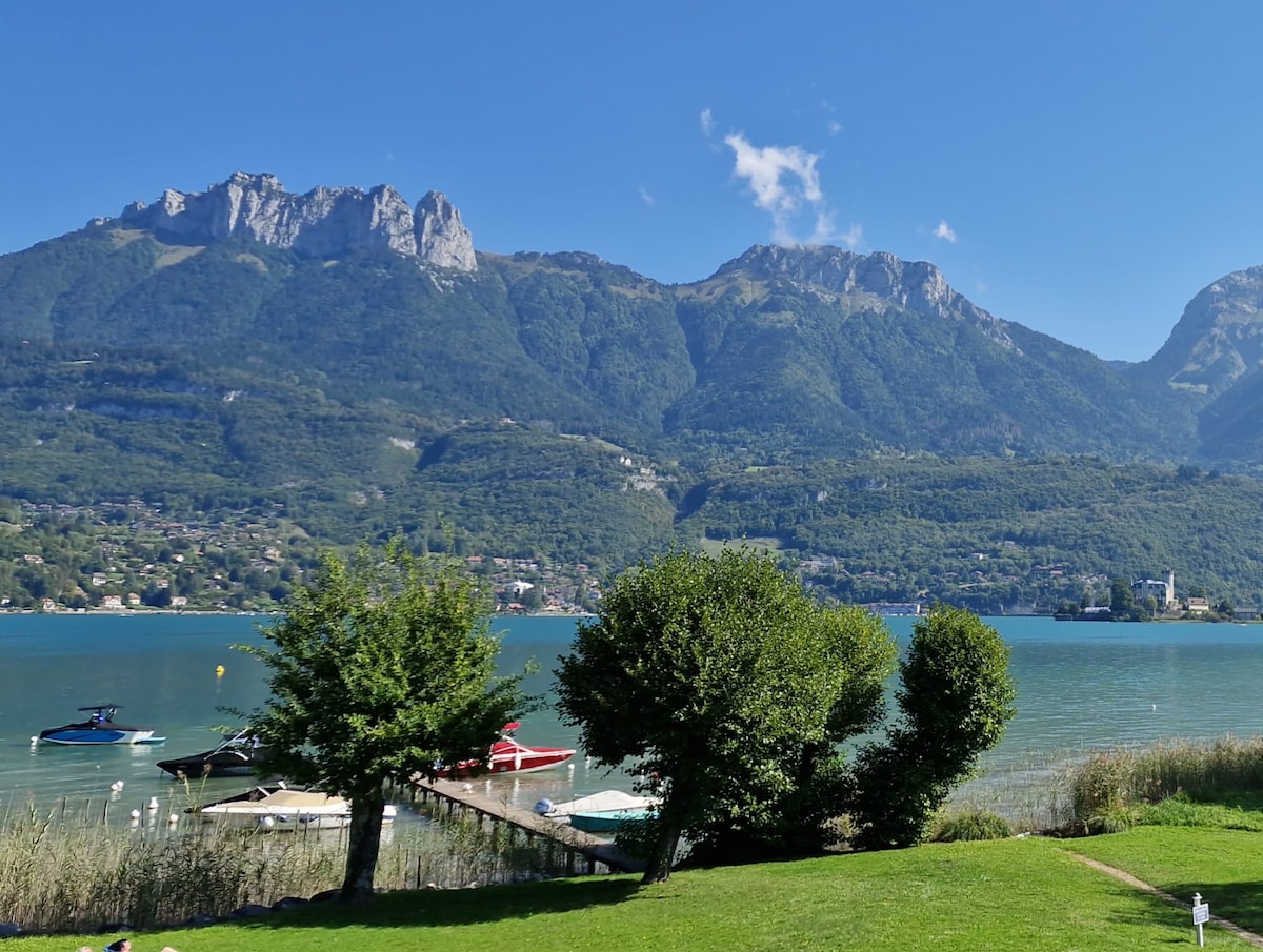 95 մ2 մակերեսով գեղեցիկ շալե, ամբողջությամբ վերանորոգված, Անսի լճից 7 մետր, Անսիից 20 րոպե և լեռնադահուկային հանգստավայրերից 30 րոպե հեռավորության վրա։ Որպես ֆոն ՝ դուք կունենաք լճի ցնցող համայնապատկերային տեսարան ։ Կարող եք օրվա ընթացքում լողալ, սահել թիավարիչ սահնակով կամ թիավարել (տեղում կա երկու թիավարիչ սահնակ և երեք թիավարիչ նավակ), հանգստանալ սաունայում՝ հիանալով լճով, կամ խաղալ պետանկ։ Տունը երկու անկախ մակարդակի վրա է ։