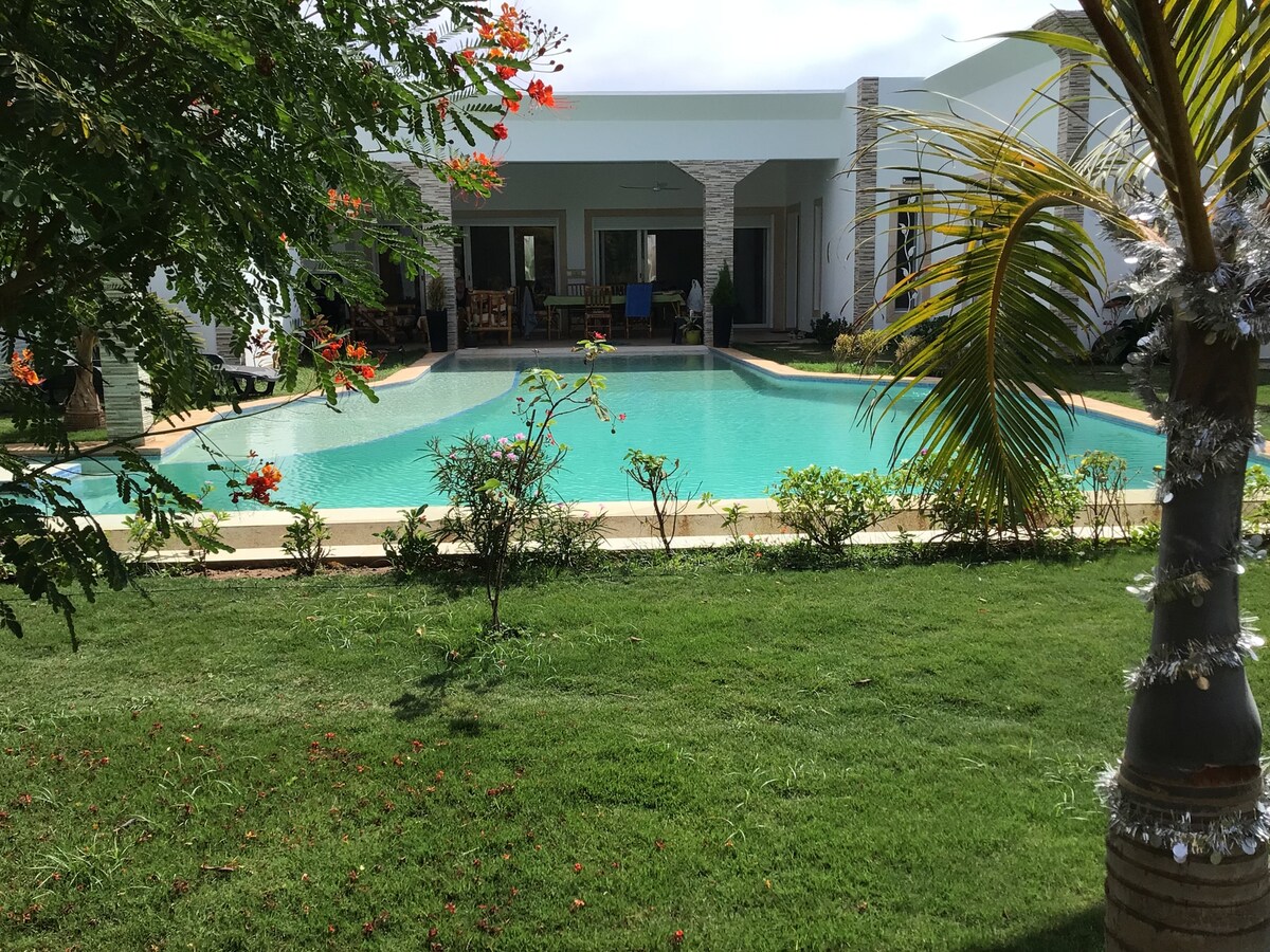 magnifique villa de 200m2 habitable elle compose 5 chambres 4 salles de bain piscine privé jardin 1700m2 sans vis à vis dans une résidence sécurisé avec des gardiens 24h sur 24h la villa et toutes équipé buanderie , draps ,seviette ,machine à café, télé, faire repasser ,micro onde,frigo, vaisselle complet ,plaque induction électrique.,poêle, couverts, piscine 15/4 de large plein sud elle se situe à 1,5 km de la plage de pointe sarene et à 4 minute du village nianing
