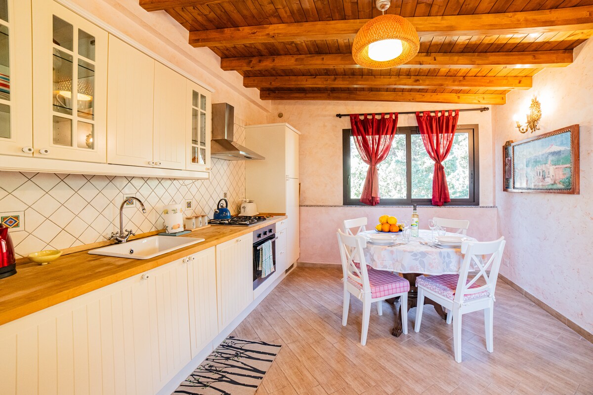 Փոքր տուն, բայց միևնույն ժամանակ «հսկայական» շնորհիվ այն մեծ պատուհանների, որտեղից կարող եք վայելել ծովի և Էթնայի տեսարանը: «Մեր հյուրերի կողմից կոչվել է «Օդում գտնվող տուն»։ Հեռադիտակ ձեզ համար, որպեսզի ավելի լավ տեսարան ունենաք ափամերձ գոտու և Էտնա սարերի՝ Նորին Մեծության՝ հիասքանչ տեսարանի»։ Տարածքը բաժանված է երկու տարածքի ՝ բնակելի տարածքի և քնելու տարածքի ։ Մուտքի մոտ գտնվող պատիոն, որը ծածկված է հնագույն կարոբի ծառով, միշտ առաջարկում է թարմ, վերականգնվող օդ ։ Բոլորին զվարճանք ենք մաղթում։