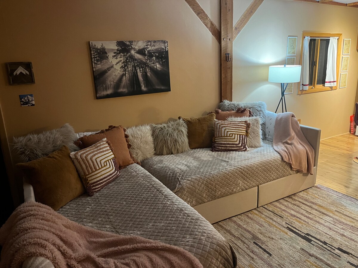 Այս վերևի հարկը ՝ կամարակապ առաստաղի լանջին, կողային կոնդոմինիումը կատարյալ է ձեր հավաքույթի համար ։ Օգտագործելով ձեղնահարկ եւ երկու ննջասենյակ այն քնում 8. 2 րոպե քայլել (ոչ բլուրներ) է բազայի սեղմեք եւ դահուկ կամ վայելել apres լեռնադահուկային կամ այլ բազային ճաշի եւ զվարճանքի. Խոհանոցը լավ համալրված է, և մեր տանտերը նախապես գնումներ կկատարի և պահեստավորելու է խոհանոցը ձեր սիրած ուտելիքներով և խմիչքներով: Բոլոր որակյալ սպիտակեղենը, կահույքը և ներքնակները: Վերջերս արդիականացված ինտերնետ և Wi - Fi: