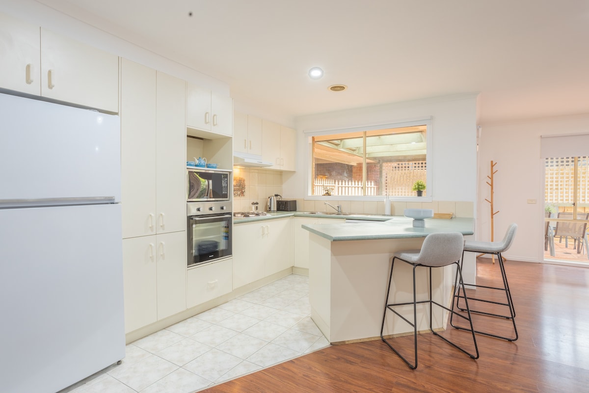 Վերադարձեք և հանգստացեք այս հանգիստ, ոճային տարածքում ։ Բարի գալուստ մեր հարմարավետ երեք ննջասենյակով տուն, որը գտնվում է Վիկտորիա նահանգի Թառնեյթ քաղաքում ։ Մեր տունը կատարյալ է մեծահասակների խմբերի և բիզնես ուղևորների համար, եթե փնտրում եք հարմարավետ և ոճային տուն: Հարմար չէ 12 տարեկանից փոքր երեխաների, այդ թվում ՝ մանուկների համար ։ Հարմարավետ եղեք ամբողջ տարվա ընթացքում ՝ ունենալով կենտրոնացված ջեռուցում և գոլորշիացնող հովացում ։