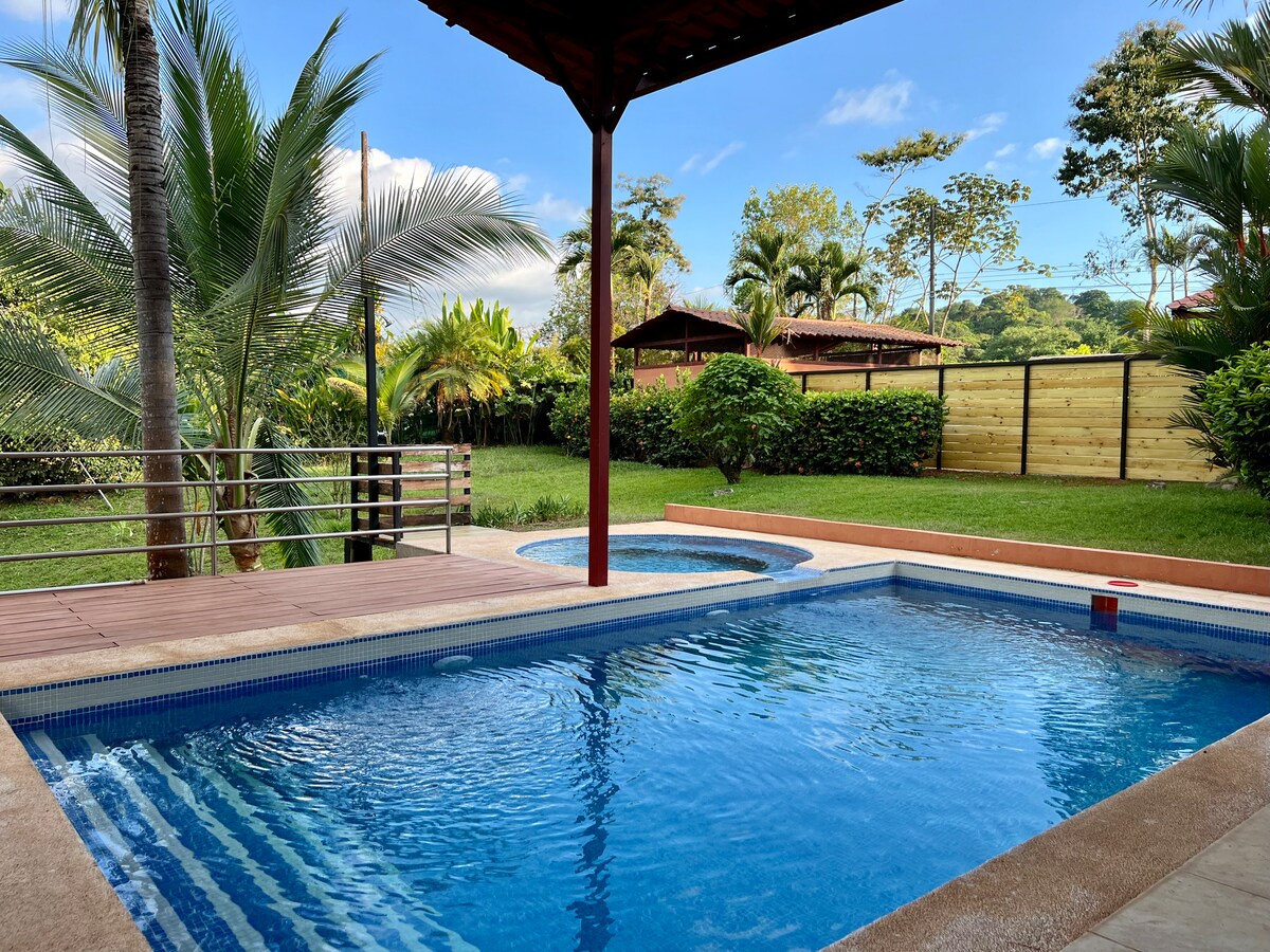 Փախեք դեպի Villas Tranquilas ՝ խաղաղ 2BR ջունգլիների կոնդոմինիում Կուեպոսից և Մանուել Անտոնիոյից ընդամենը 5 րոպե հեռավորության վրա ։ Շրջապատված է փարթամ անձրևային անտառներով, տեղում կապիկներով, մակույկներով, տուկաներով, թիթեռներով, կոլիբրիններով, նույնիսկ եղջերուներով կամ հազվագյուտ ջագուարունդիով ։ Վայելեք պտղատու ծառերը և մոտակայքում գտնվող փոքրիկ գետը ։ Հանգստացեք երկու պատիոյում, պատրաստեք բաց խոհանոցում կամ հանգստացեք ձեր տանը ՝ տնից հեռու: Վայրի բնությունը, հարմարավետությունը և արկածները սպասում են երթևեկությունից և աղմուկից հեռու խաղաղ պայմաններում ։