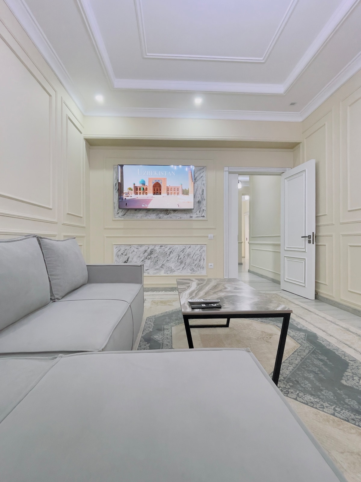 Spacious apartment in the very center of Tashkent. Beautiful view. There are many restaurants and cafes around. Equipped with everything you need to make your stay unforgettable. It is close to the famous tourist spots and attractions of the city. The apartments are located near the airport at a distance of 1 kilometer. There is a large store right under the apartment.