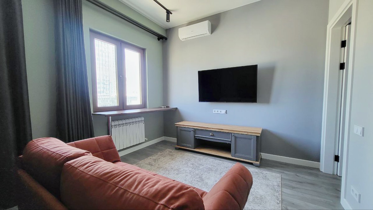 Ժամանակակից ստուդիա - բնակարան պրեմիում դասի բնակելի համալիրում ՝ «Բուլվար »։« Այն հարմարավետորեն գտնվում է քաղաքի կենտրոնում ՝ զբոսայգիների, խանութների և խաղահրապարակների մոտակայքում ։ Բնակարանը հագեցած է հարմարավետ այցի համար անհրաժեշտ բոլոր պարագաներով ՝ Wi - Fi, օդորակիչ, հեռուստացույց, գազօջախ, միկրոալիքային վառարան, թեյնիկ, լվացքի մեքենա ՝ չորանոցով և արդուկով ։ Բնակարանի ներսում կգտնեք ընդարձակ երկտեղանի մահճակալ և բազմոց, որը կարելի է ծալել մահճակալի մեջ ։ Այն կարող է հարմարավետորեն տեղավորել մինչև երկու մեծահասակի և մեկ