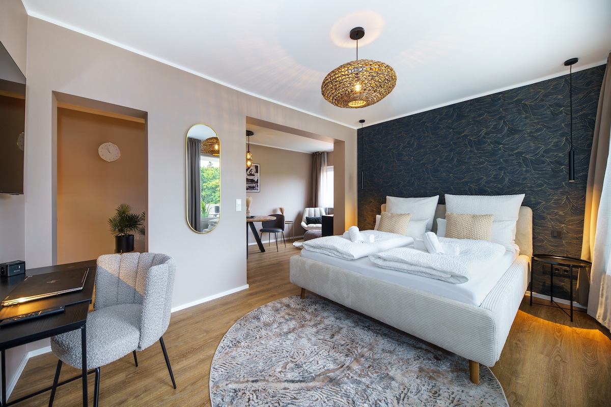 Welcome to STAYTONA! Our stylish apartment Saphir in the Taunus leaves nothing to be desired for your great short or long-term stay: * covered balcony with dining area * parking space in the underground garage * fully equipped kitchen incl. Nespresso machine + tea + spices * high-speed Wi-Fi, Smart-TV, Bose Soundlink * comfortable queen size bed * work area * washer-dryer * car rental service (extra charge) We aim to provide you with a 5-star stay in our high quality furnished apartment.