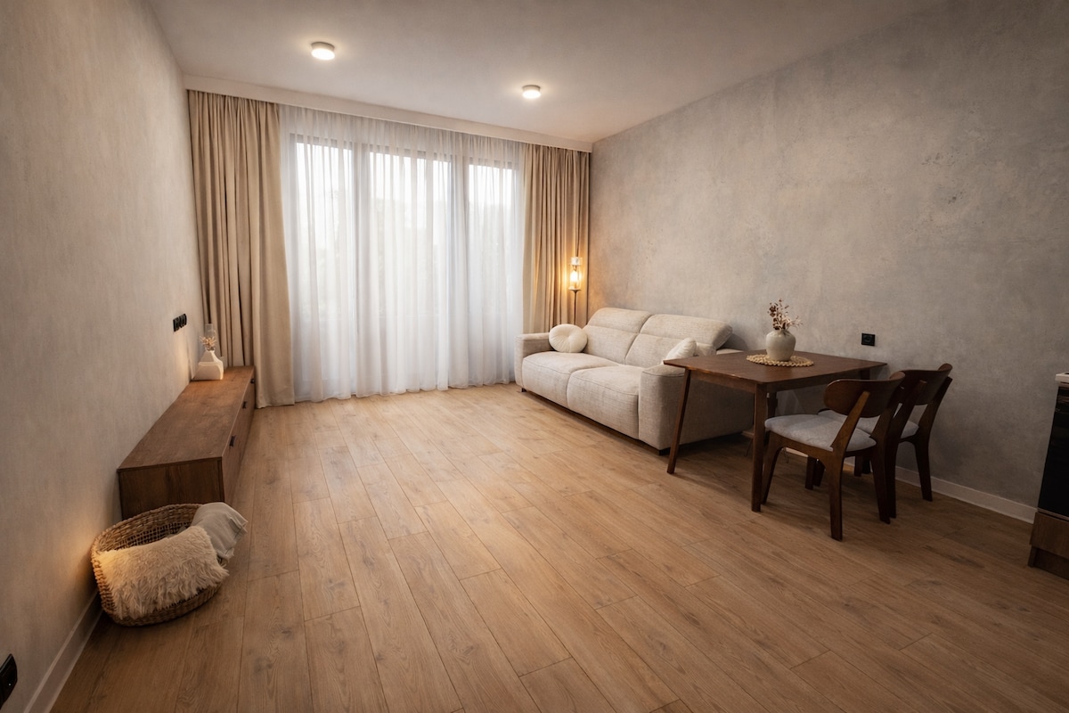 Վերադարձեք և հանգստացեք այս հանգիստ, նորաոճ տարածքում ։ Ժամանակակից և բացառիկ դիզայնով բոլորովին նոր, մեկ ննջասենյակով բնակարանը ժամանակակից ճարտարապետության նմուշ է: Այն լավագույն տարբերակներից մեկն է միայնակ ճանապարհորդների կամ զույգերի համար, ովքեր փնտրում են ապաստան հարմարավետության և հանգստի համար: