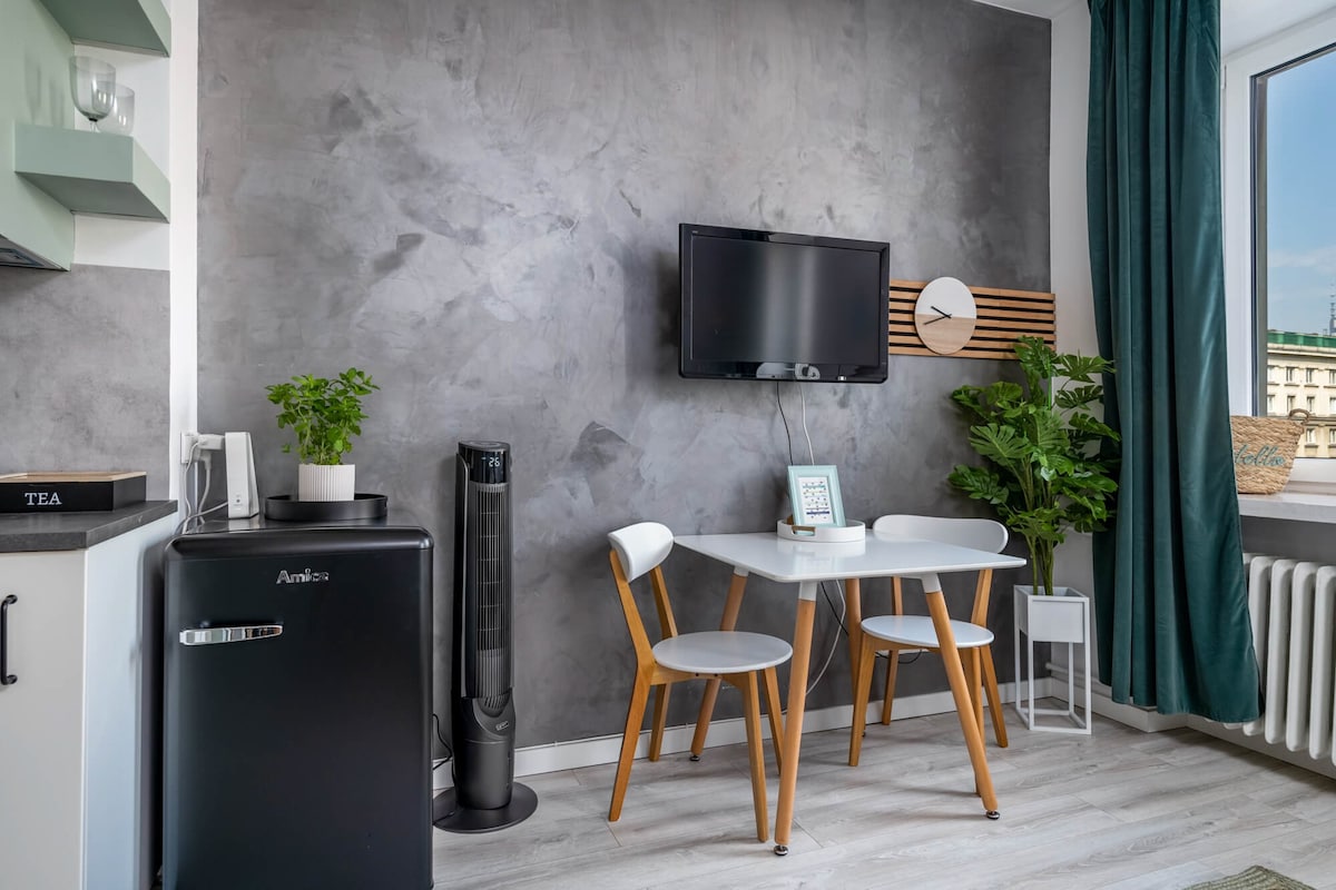 Cozy modern studio in the center of Downtown. Located near the best restaurants and cafes and all major attractions. Fully equipped premises of a higher standard on the 3rd floor with an elevator. Windows to the street. Przytulne nowoczesne studio w centrum Śródmieścia. Zlokalizowane w pobliżu najlepszych restauracji i kawiarni oraz wszystkich największych atrakcji. W pełni wyposażony lokal o podwyższonym standardzie na 3 piętrze z windą.