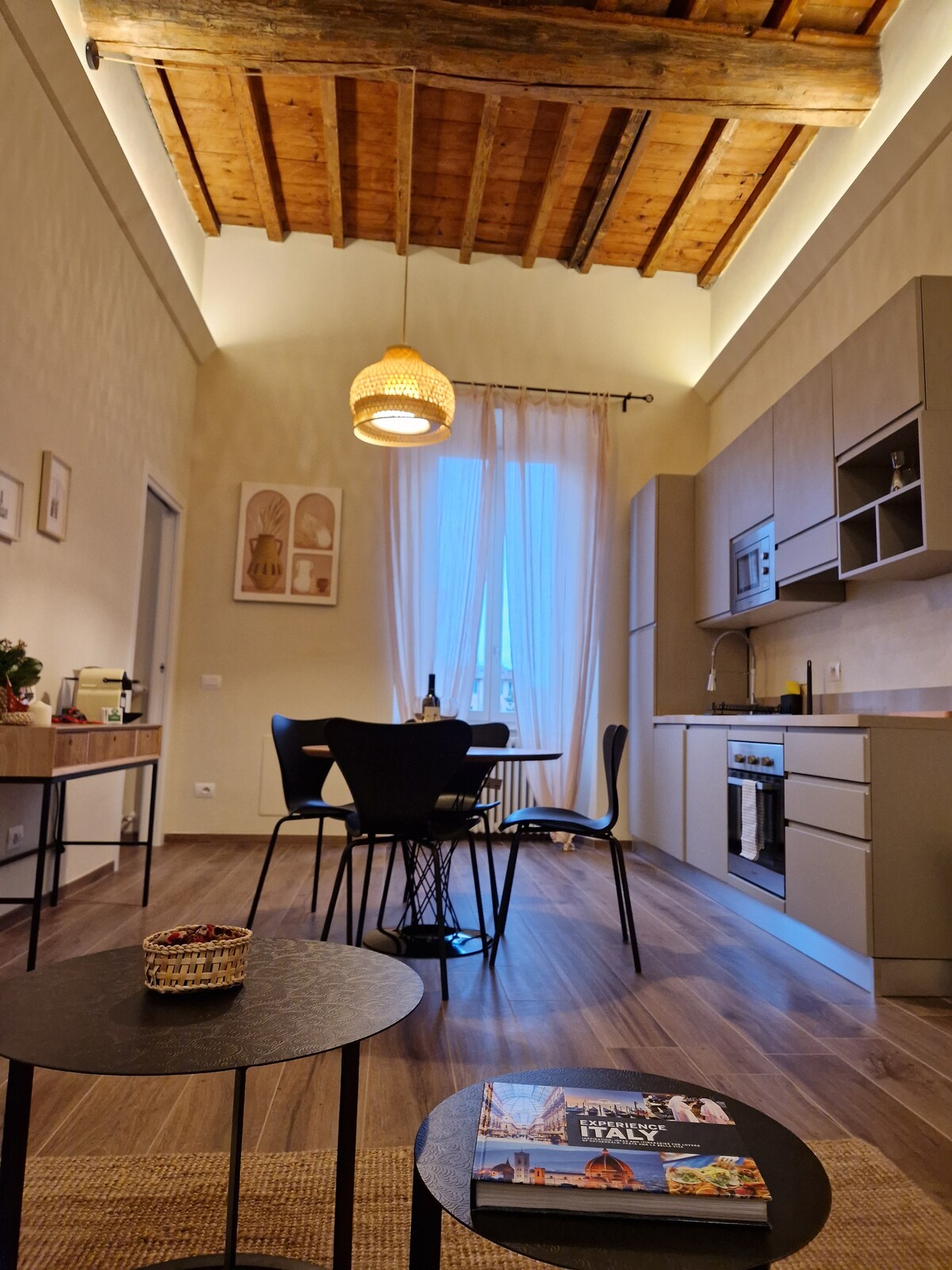 This exclusive apartment in the heart of Florence offers a breathtaking view of Brunelleschi’s Dome and is just a short walk from the Duomo, Piazza della Signoria, the Uffizi Gallery, and Ponte Vecchio. Renovated with premium materials, it features air conditioning, a fully equipped kitchen, a dishwasher, and a washing machine. The bright living area and the charming loft bedroom make it perfect for a comfortable and unforgettable stay in Italy’s most enchanting city.