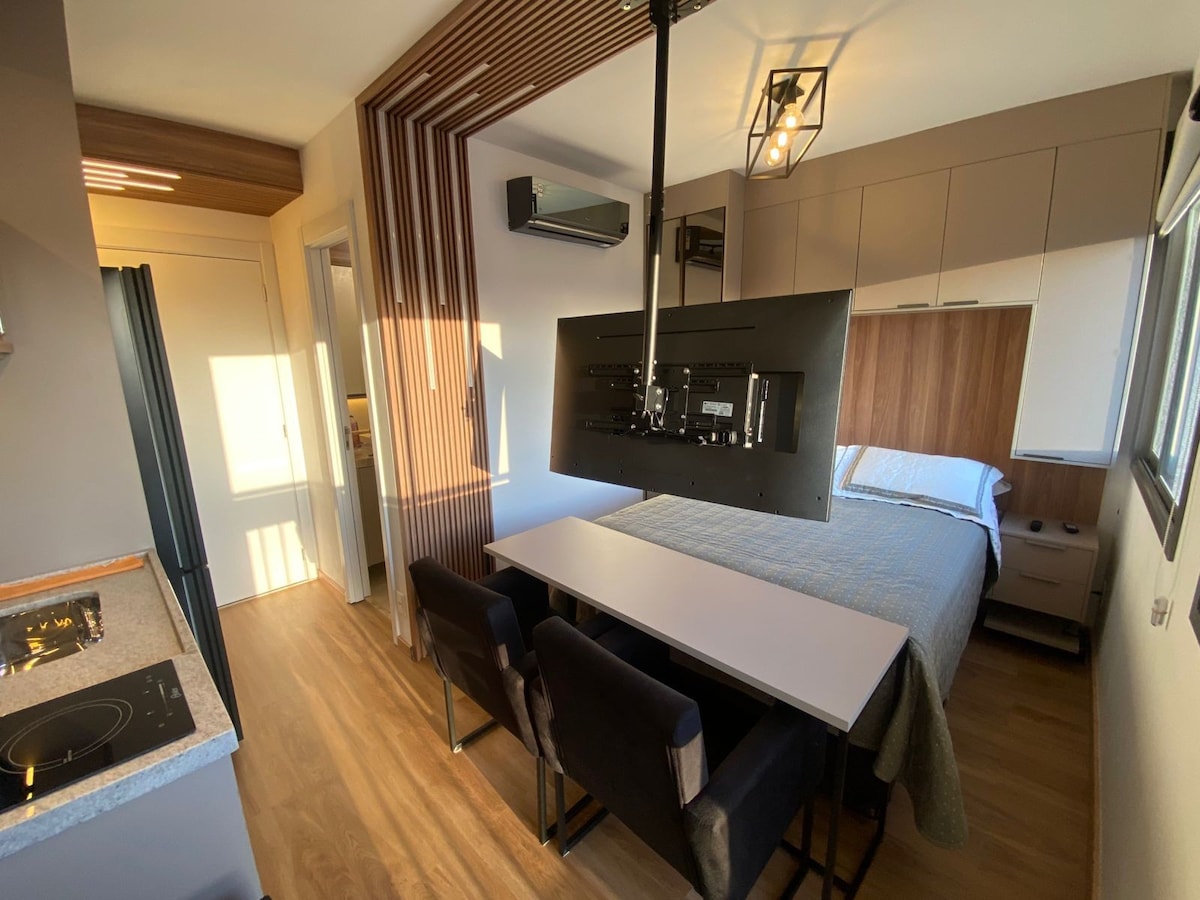 Productivity and comfort in the dynamic rhythm of Brooklin. An elegant, quiet and functional studio, ideal for those traveling to São Paulo for business. Enclosed balcony integrated into the space, perfect for online meetings or relaxing moments. Just steps from Brooklin Metro, with easy access to major business centers and Congonhas Airport. Close to markets, restaurants and essential services in a safe, strategic area.