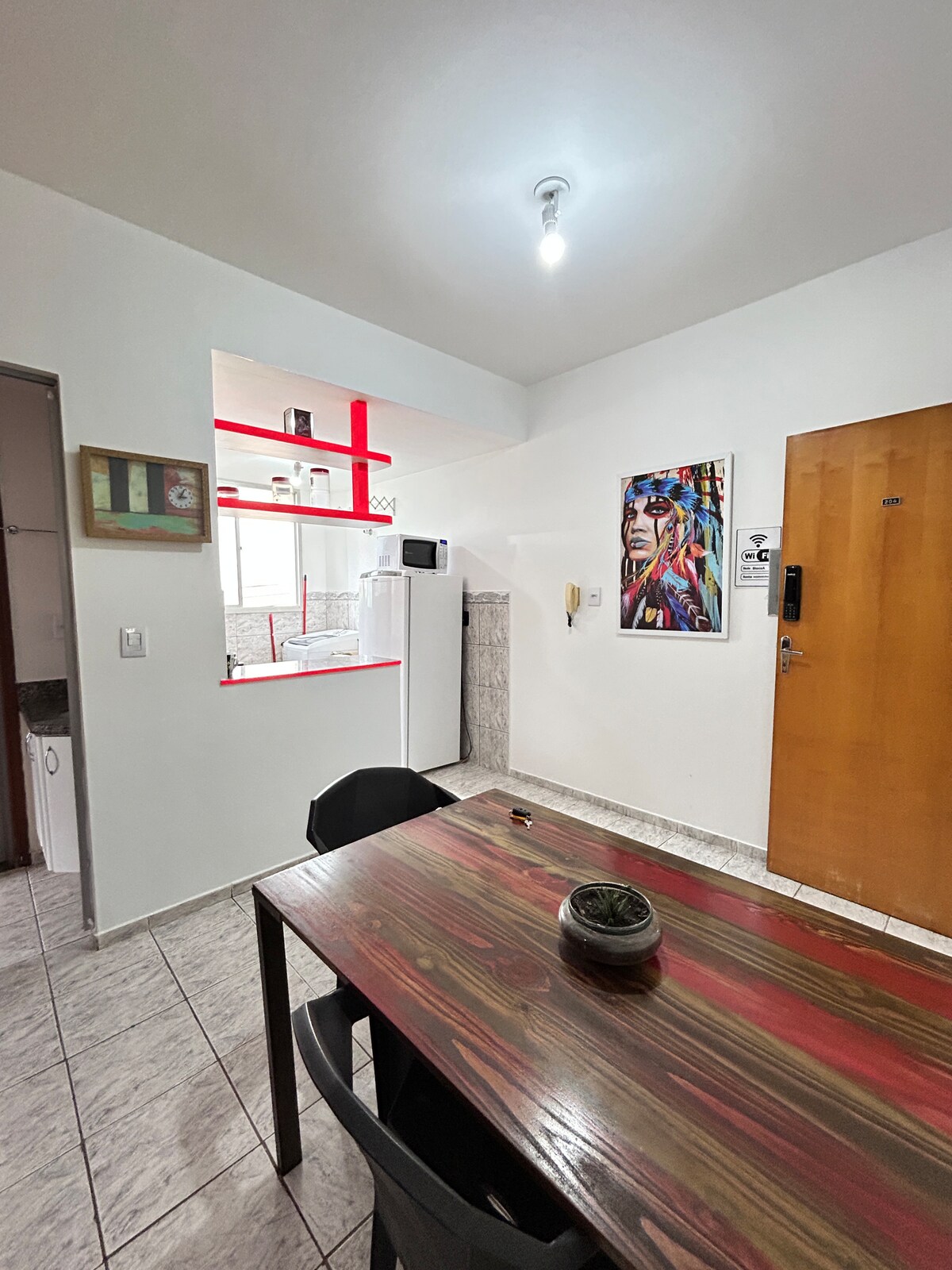 Cerque-se de estilo neste espaço excepcional. Selfcheckin dando acesso a um ambiente todo mobiliado com produtos de altíssima qualidade geladeira, fogão cooktop, maquina de lavar, microondas, utensílios domésticos para você se sentir na sua casa, iluminação aconchegante, ar condicionado na sala e quarto, ferro de passar roupas, secador, televisões smart e wifi de alta velocidade!Acompanha toalhas e roupas de cama sempre limpas