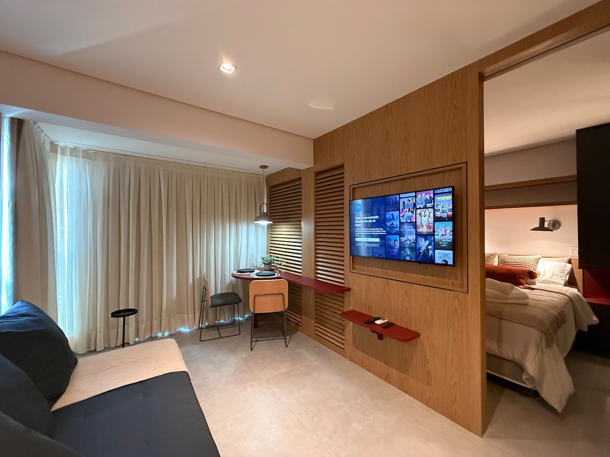 Queen մահճակալ, օդորակիչ, հեռուստացույց Smart 43”, մանրաթելային ինտերնետ, 1 ավտոտնակ, մարզասրահ և լողավազան ։ Pertinho da Avenida Paulista և մետրոյից հեշտությամբ օգտվելու հնարավորությամբ ։ Ժամանման և մեկնման ճկուն ժամեր ։ Ստուգեք ազատ ամսաթվերը ։ :) Հիանալի է տնային գրասենյակի համար. երկու անկախ ինտերնետային ցանց՝ Vivo և Claro, երկուսն էլ 300 Մբ։ Բնակարանի ամենօրյա մաքրում և մաքրում ։ Երկարաժամկետ (10+ օր) այցերի դեպքում ներառված է անկողնային և լոգասենյակի սպիտակեղենի փոփոխությունը։